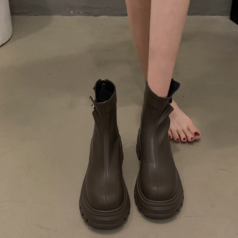 Jia Bufake ショートブーツ女性の 2023 秋の気質レトロフレンチ Comtable 太いヒール西洋スタイルの小さなショートブーツ 靴 シューズ オータム 秋物 jxjxf31023153917