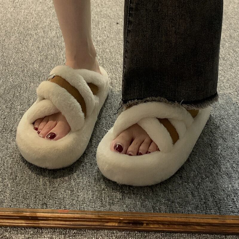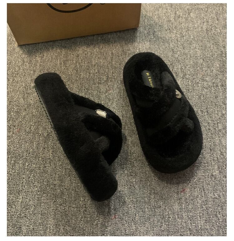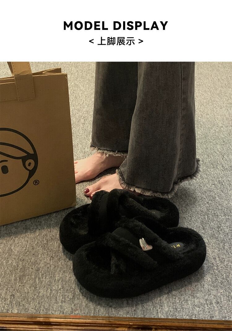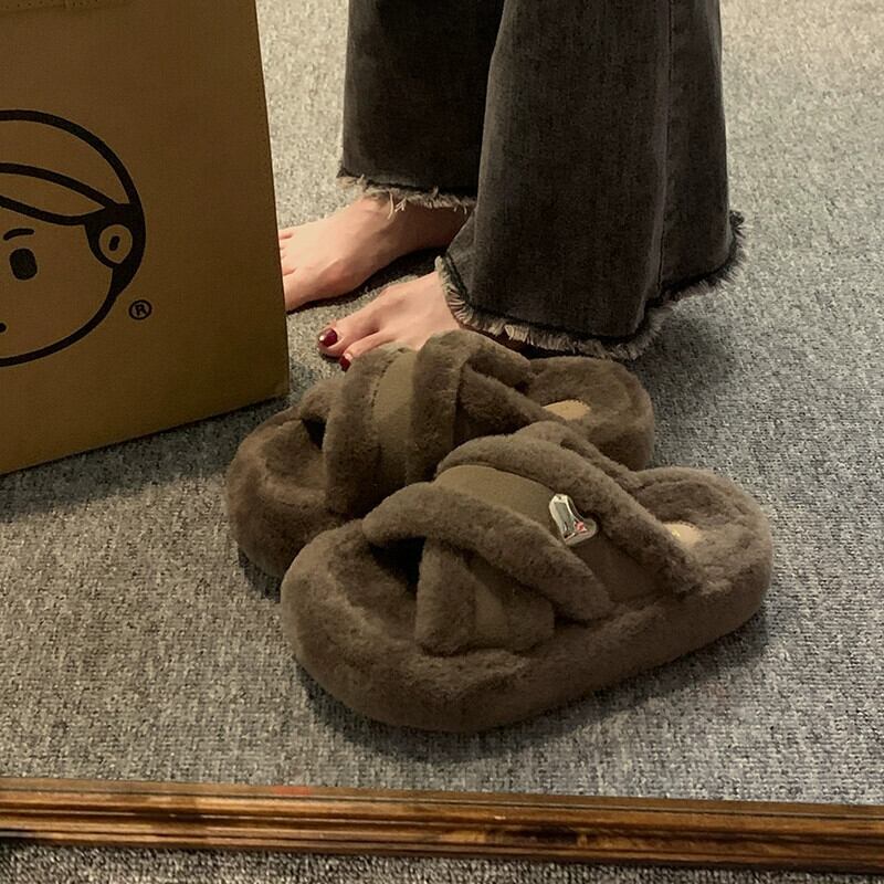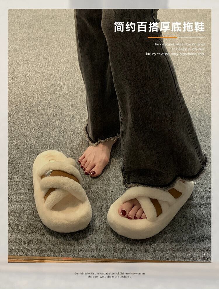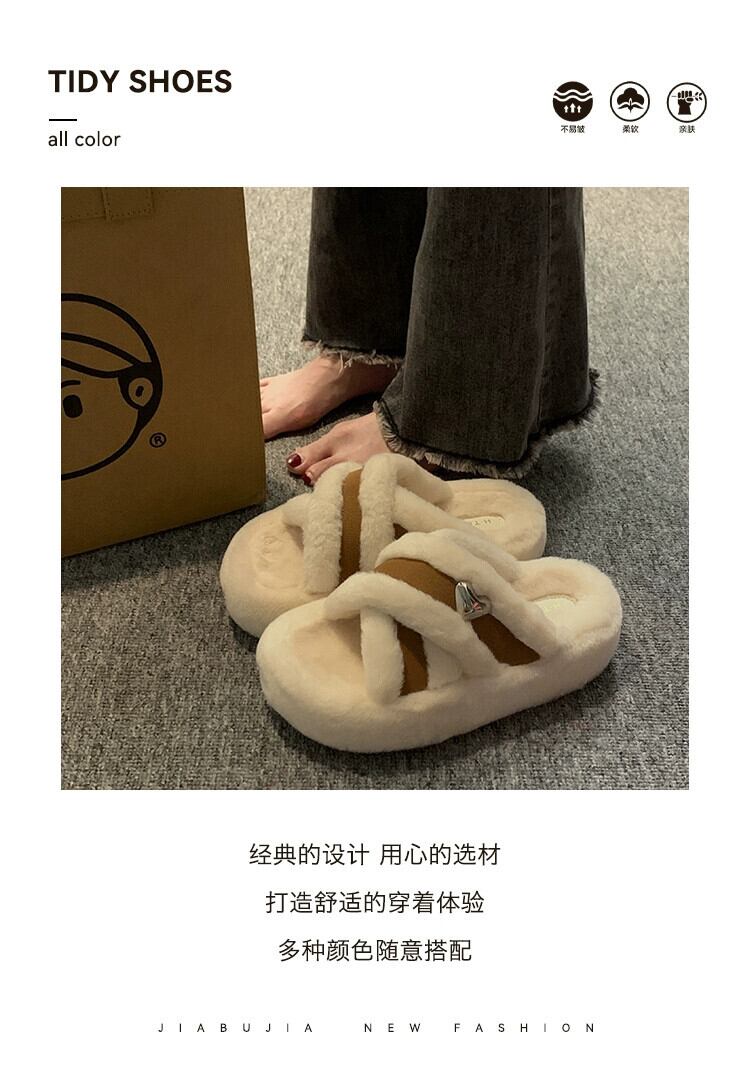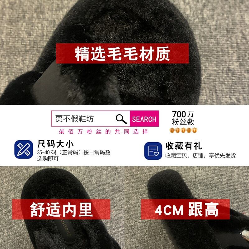 Jia Bujia のアウタースリッパ女性 2023 新しい秋のレトロなスタイルの小さな厚い底の快適な毛皮のようなトレンディな ミュール 靴 シューズ オータム 秋物 jxjxf11862902666