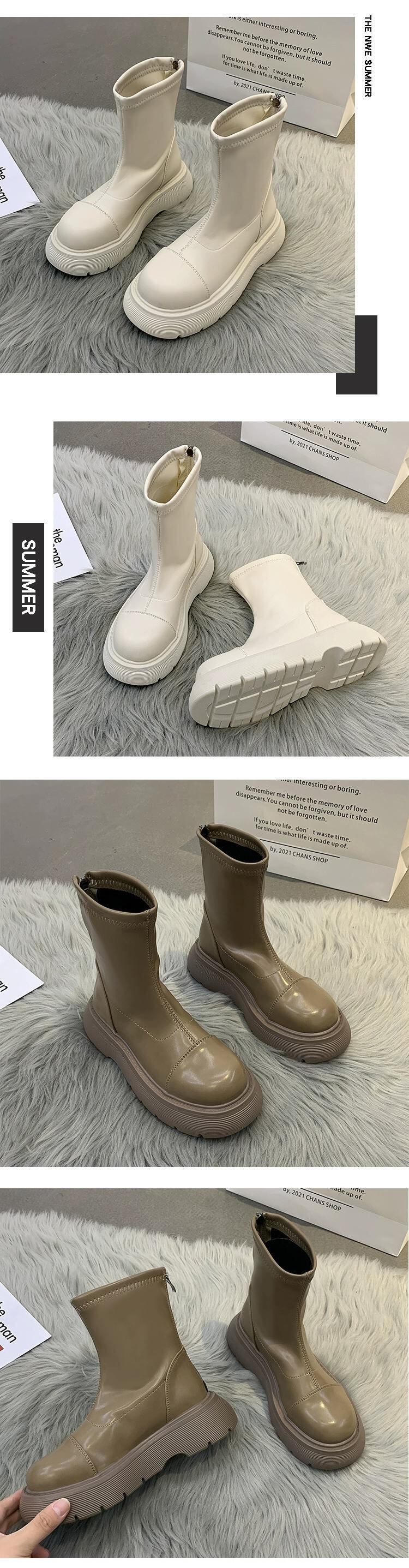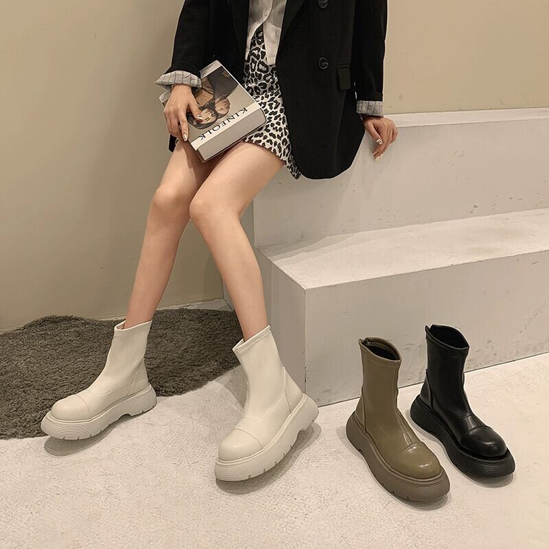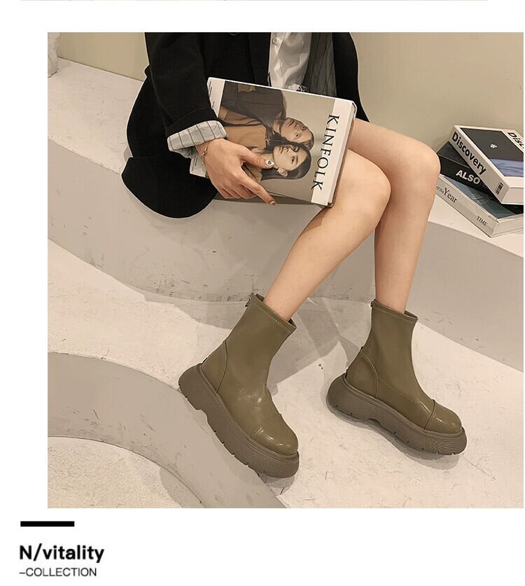 Jia Bujia レディース ショートブーツ 2023 秋超ホット多用途小型厚底レトロスリムブーツ 靴 シューズ オータム 秋物 jxjxf65686713536
