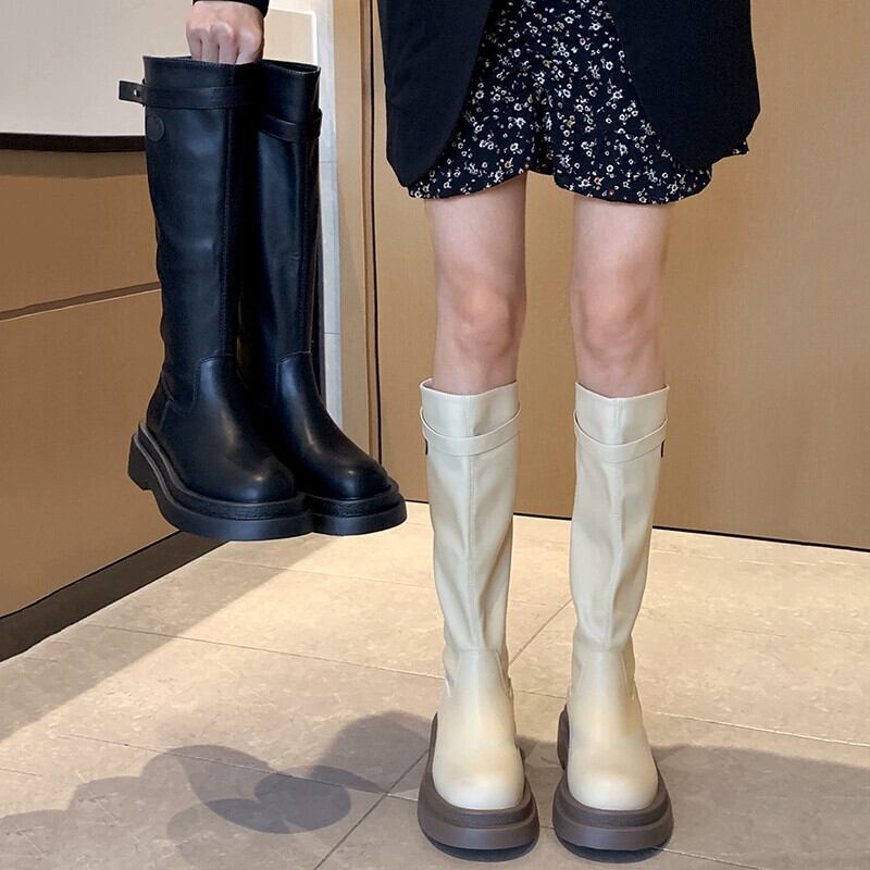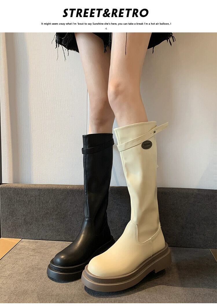Jia Bufake ロングブーツの女性 2023 秋の新ファッション多用途レトロな eign スタイル厚底フレンチスリムブーツトレンド 靴 シューズ オータム 秋物 jxjxf46325013192