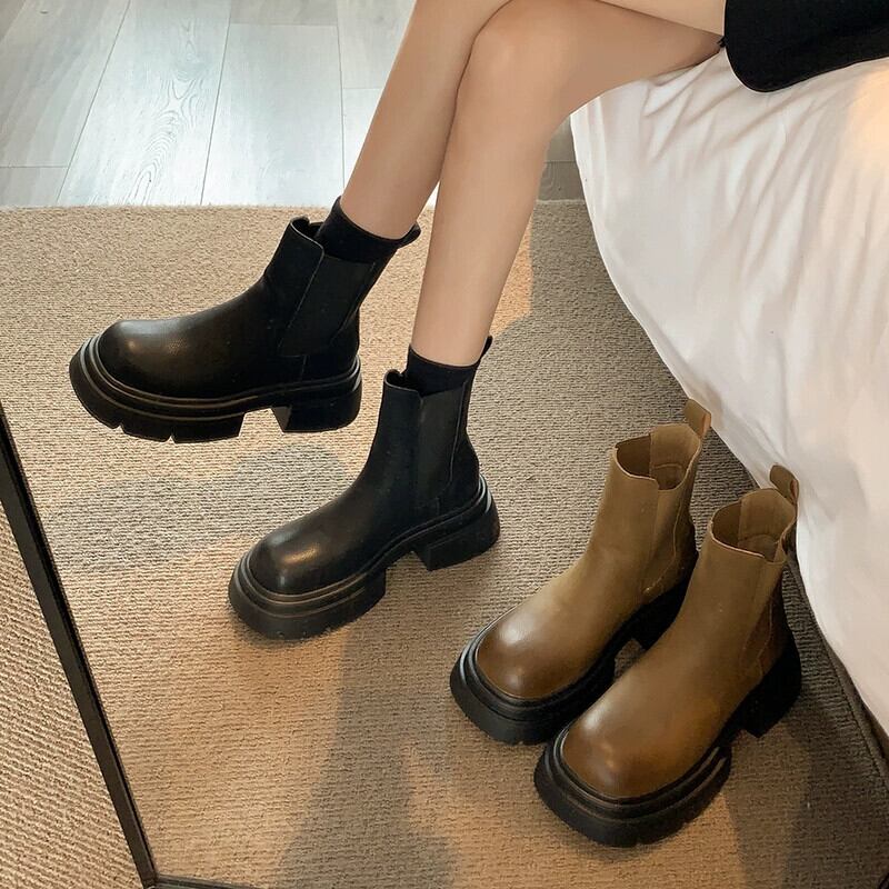 Jia Bufake 厚いヒールチェルシーブーツの女性 2023 秋の新ファッションフレンチレトロな気質弾性ショートブーツ 靴 シューズ エラスティック 伸縮 オータム 秋物 jxjxf54630621276