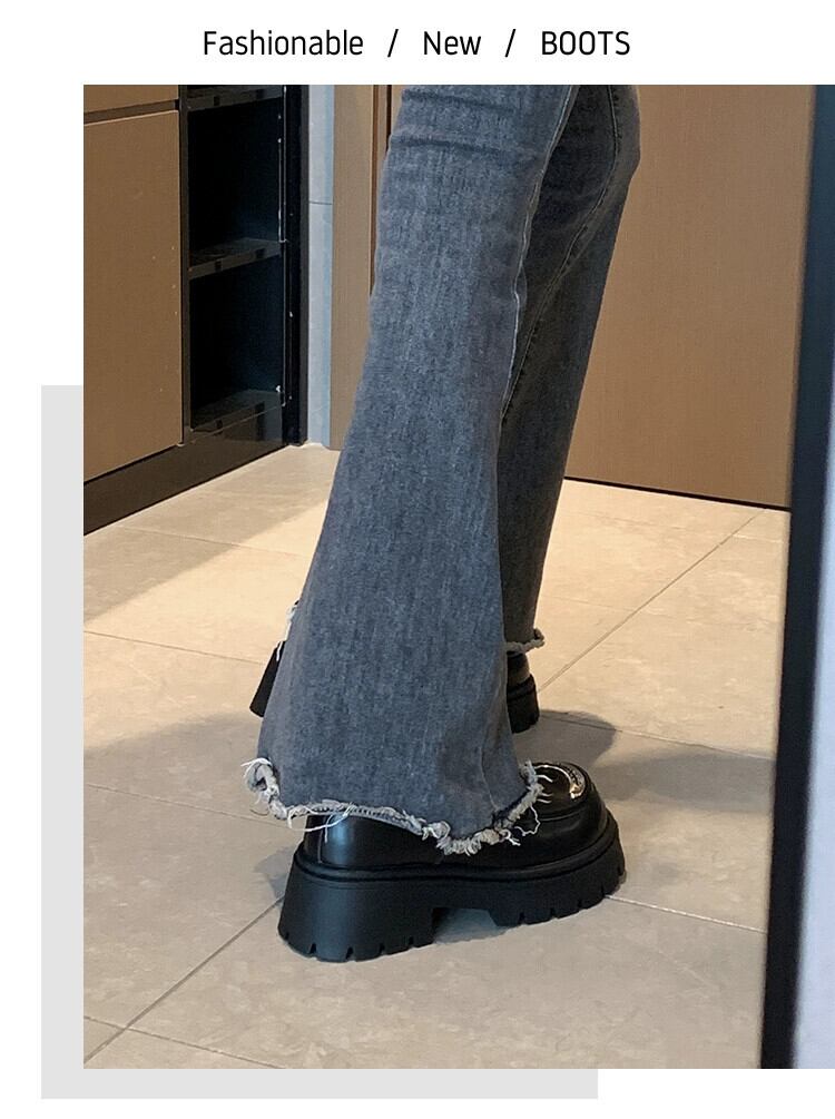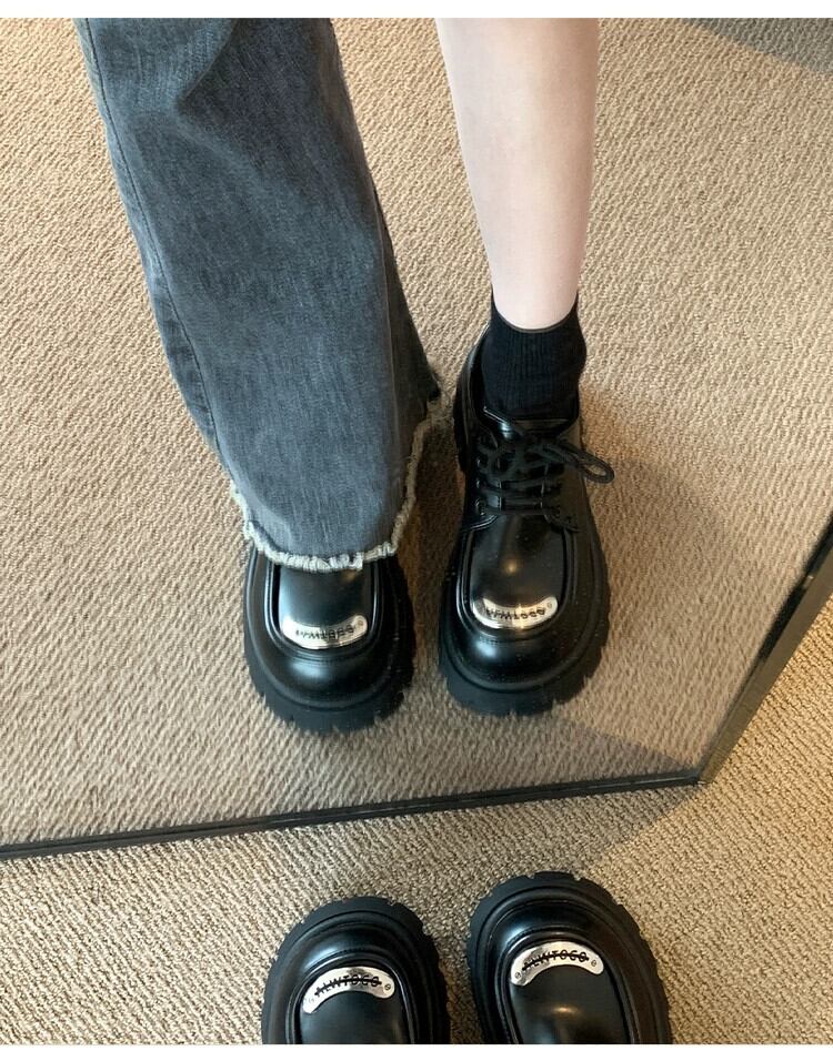 Jia Bujia 英国スタイルのシングルシューズの女性 2023 秋の新ファッションファッション学生厚底 comtable 小さな革靴 オータム 秋物 レザー jxjxf61986346629