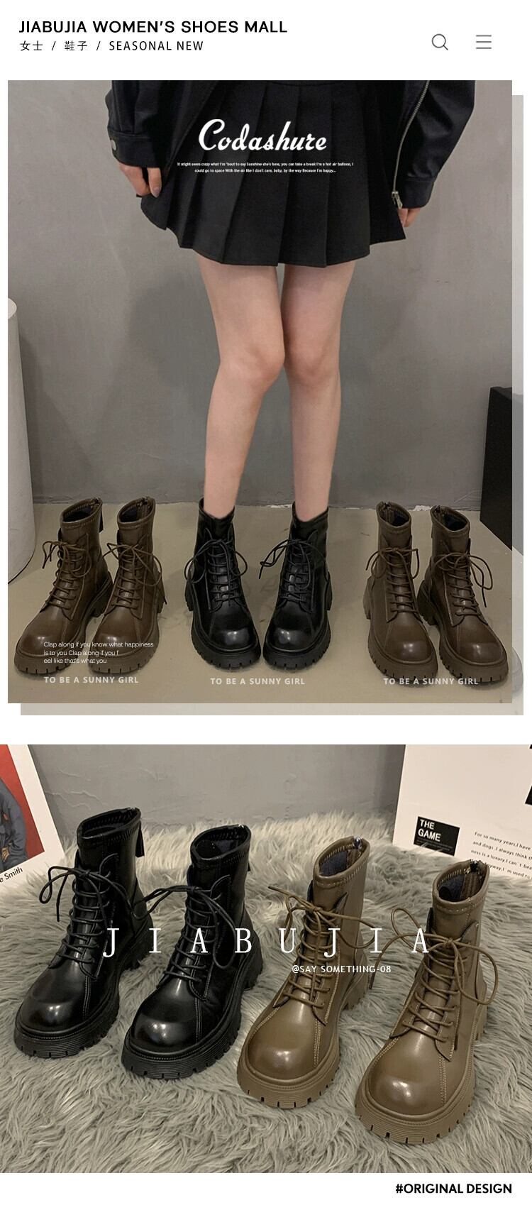 Jia Bufake ショートブーツ レディース 2023 秋トレンディ レトロ 小さい ハンサム 厚底 ストリート マーティンブーツ 靴 シューズ オータム 秋物 jxjxf10255636203