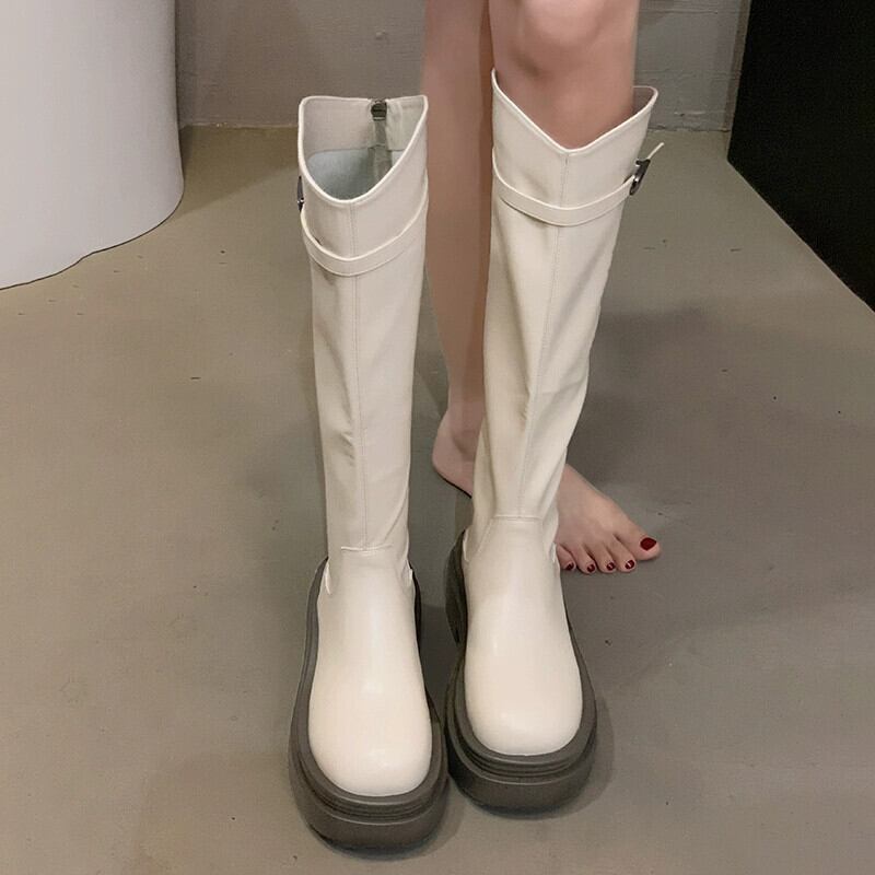 Jia Bufake 厚いヒールブーツの女性 2023 秋の新スタイルフランスの気質ファッショナブルな多用途カジュアルスリムブーツ 靴 シューズ オータム 秋物 jxjxf52191410605