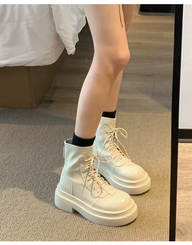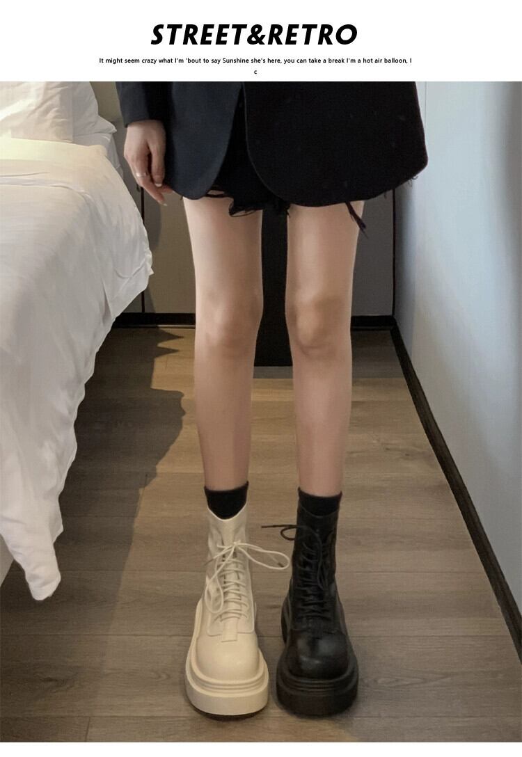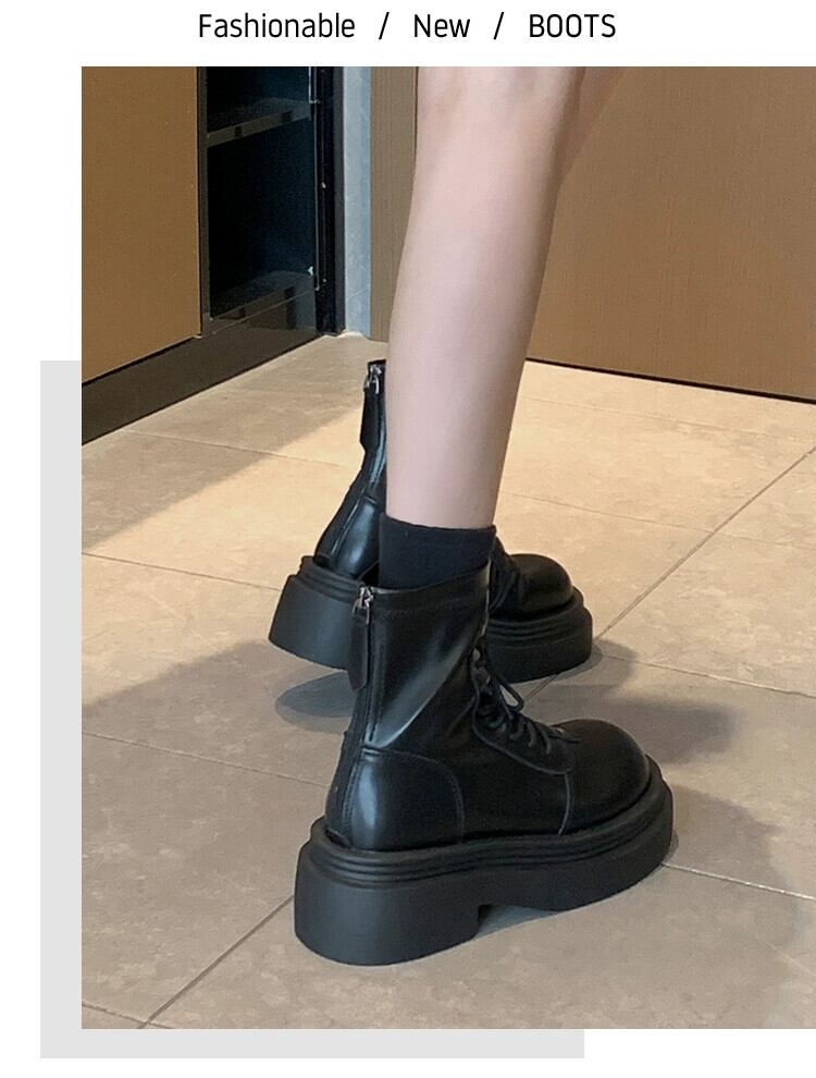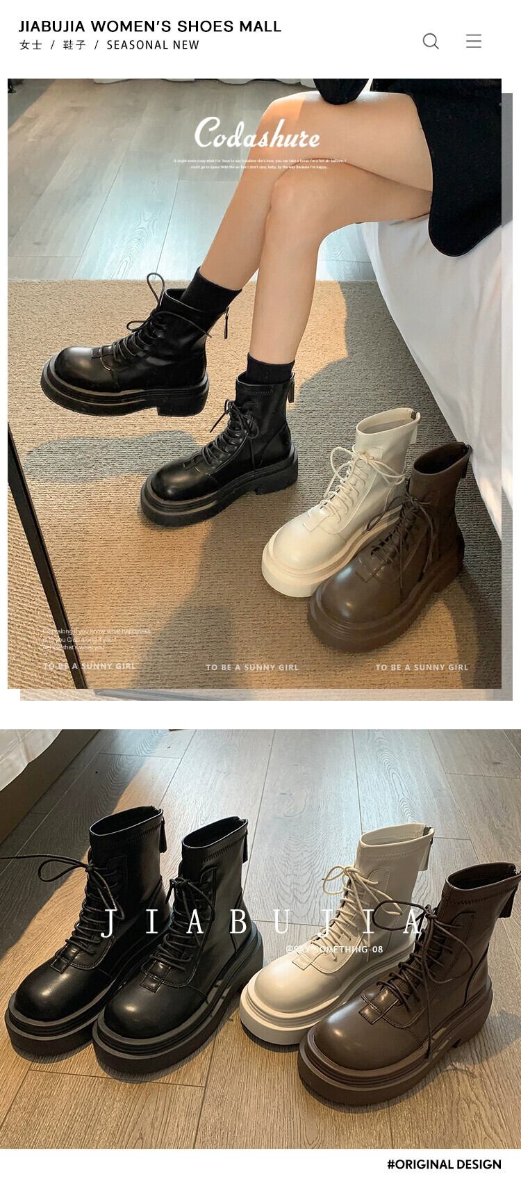 Jia Bujia レディース ショートブーツ 2023 秋の新スタイルフレンチスタイルシンプルファッション多用途厚底スリムブーツトレンド 靴 シューズ オータム 秋物 jxjxf32718551397