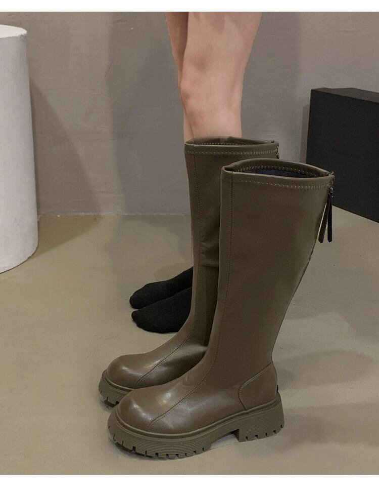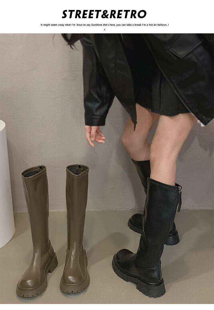 Jia Bufake ブーツ レディース 2023 秋スーパーホット多用途レトロスリム厚いヒールフレンチスリムブーツ 靴 シューズ オータム 秋物 jxjxf30444930548