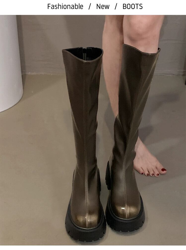 Jia Bufake ブーツの女性 2023 秋の新しいインターネットセレブの超人気の多用途の小さな太いヒールのハンサムな騎士のブーツのトレンド 靴 シューズ オータム 秋物 jxjxf52851889998