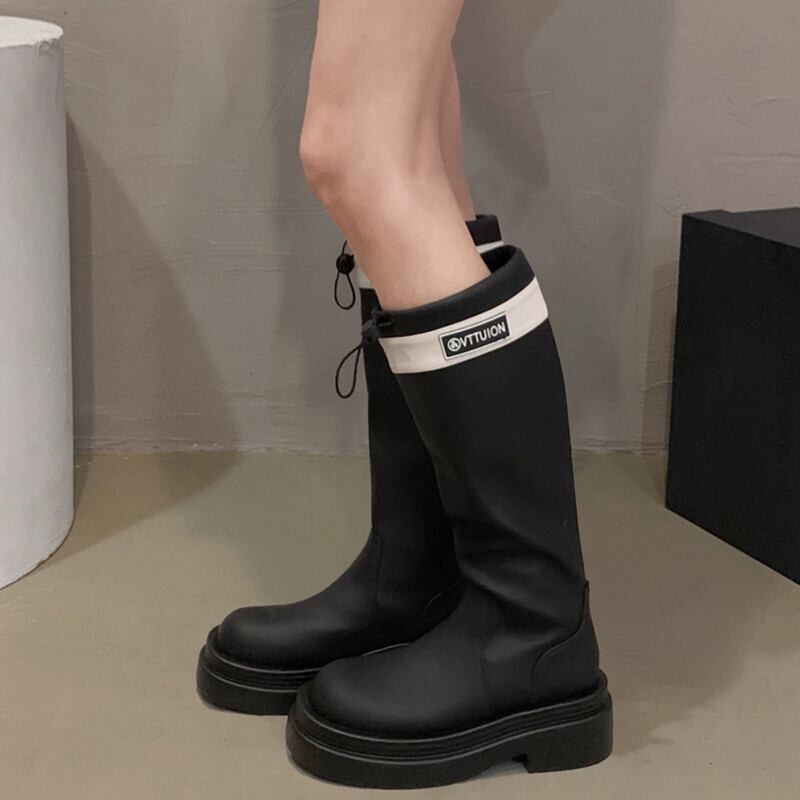 Jia Bujia インターネットセレブブーツの女性 2023 秋の新アメリカンレトロオールマッチスリム厚底ハンサムスリムブーツ 靴 シューズ オータム 秋物 jxjxf48386283277