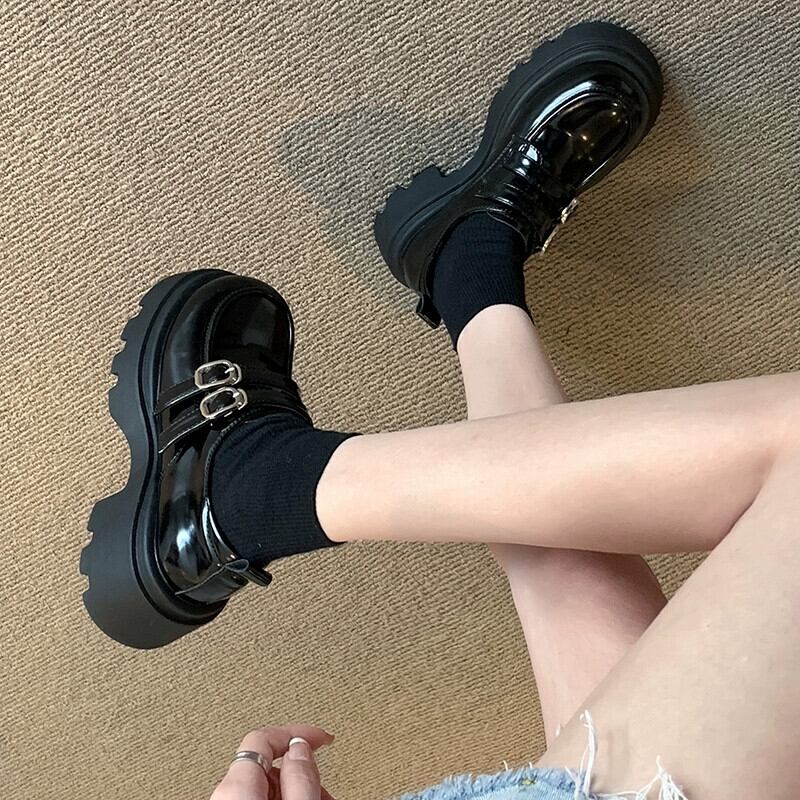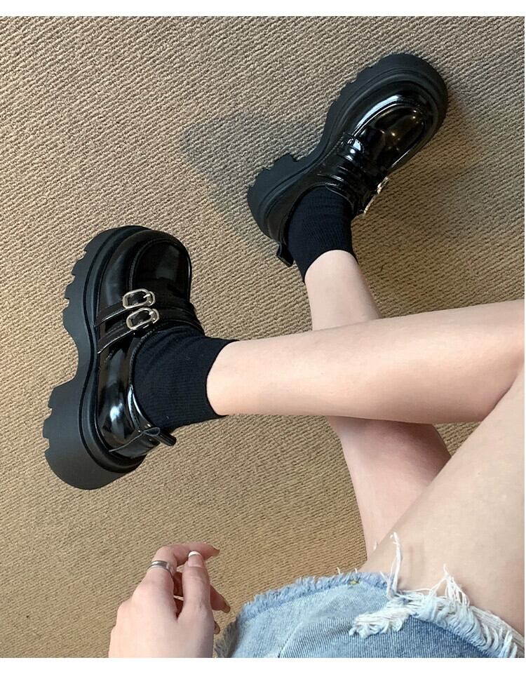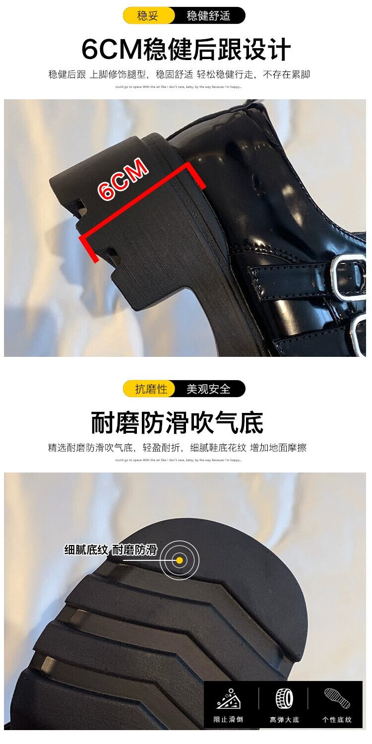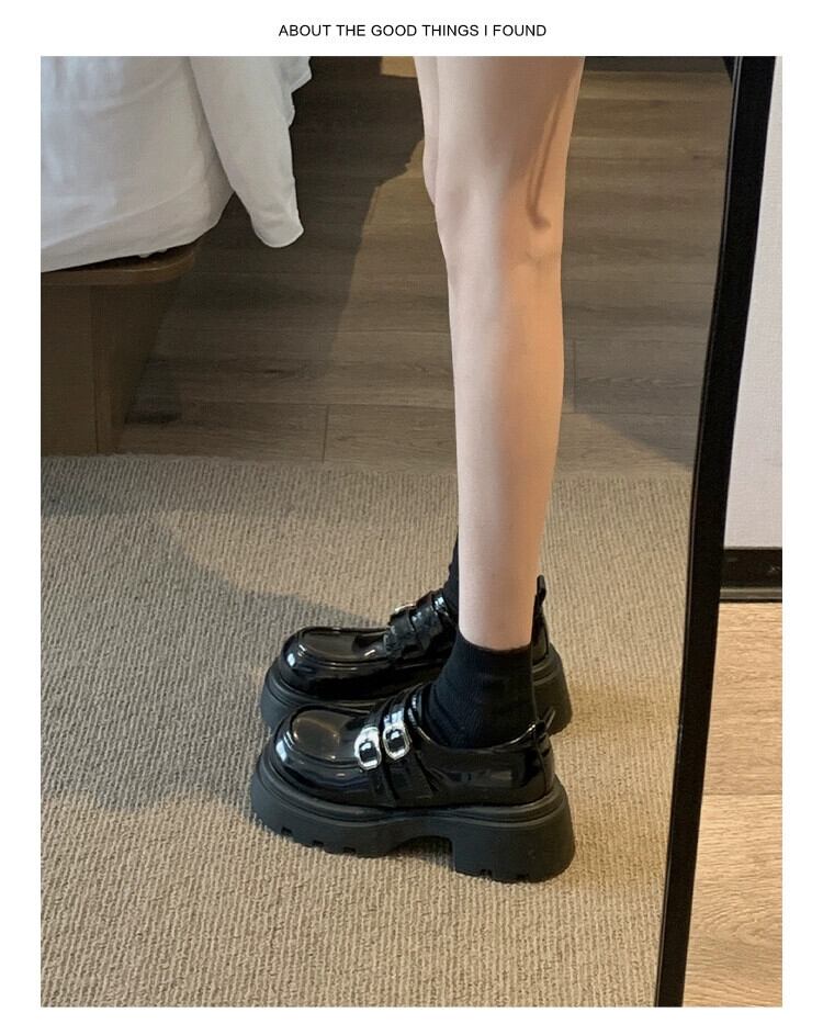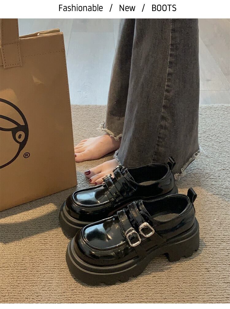 Jia Bujia 英国スタイルの小さな革の靴の女性 2023 秋の新ファッションベルトバックルフレンチ厚いヒールローファートレンディな シューズ オータム 秋物 レザー ハーネス jxjxf59058059687