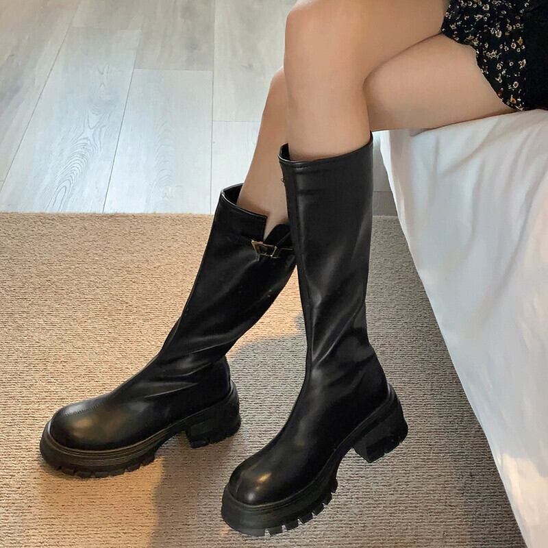 Jia Bujia フレンチブーツの女性 2023 秋の新ファッション多用途気質レトロスリム厚底スリムブーツ 靴 シューズ オータム 秋物 jxjxf66888958195