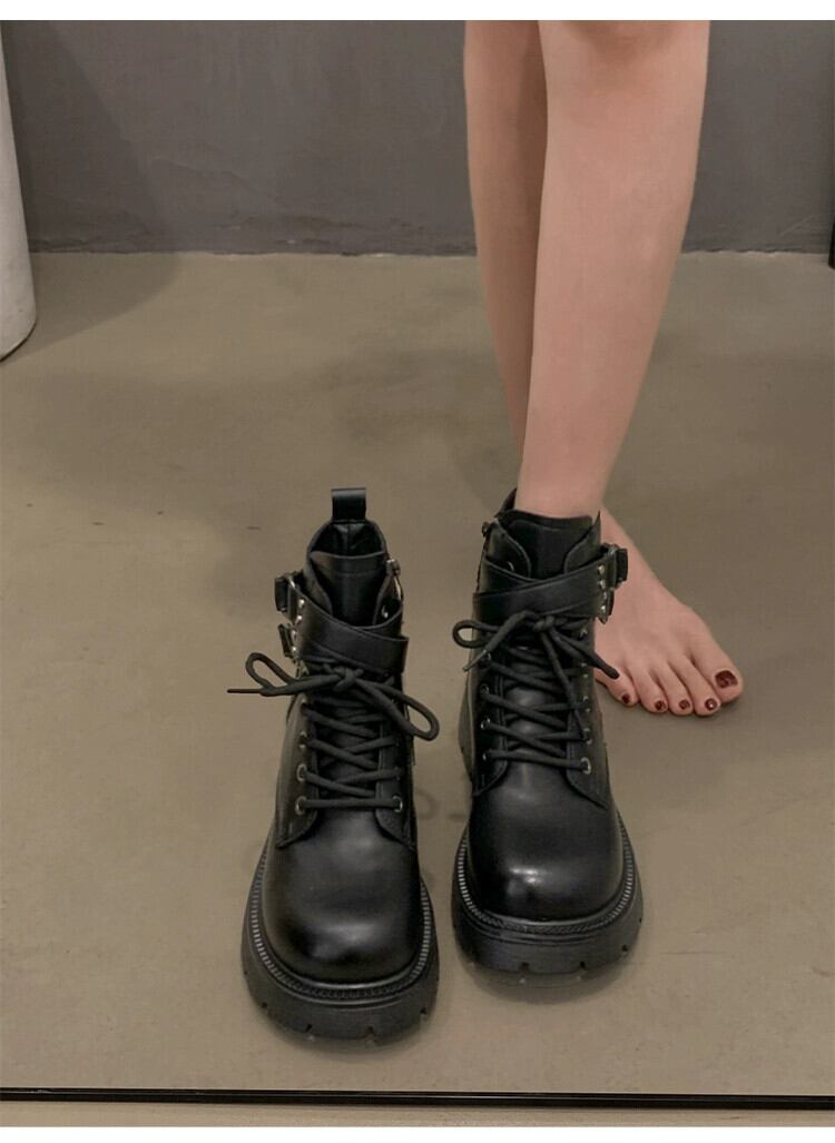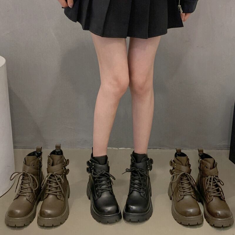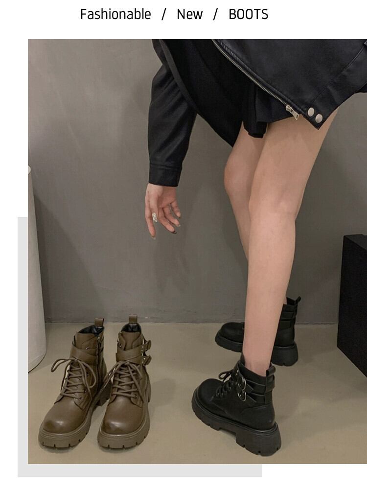 Jia Bujia レディースショートブーツ 2023 秋の新ファッションレトロ多用途プラスベルベット厚底ハンサムマーティンブーツトレンド 靴 シューズ オータム 秋物 jxjxf49312525347