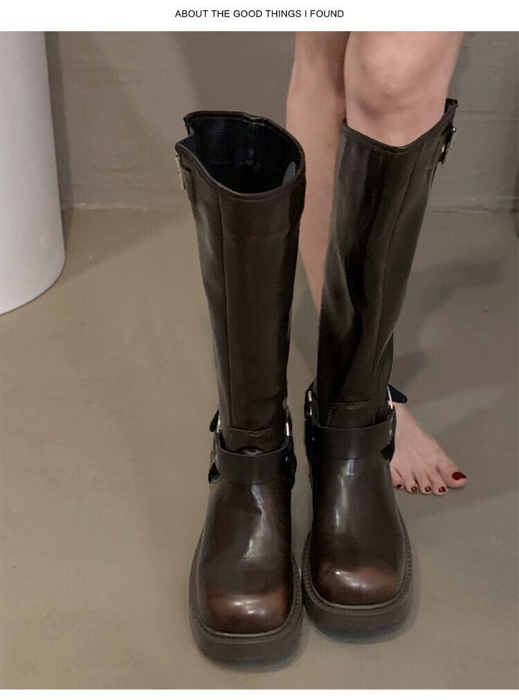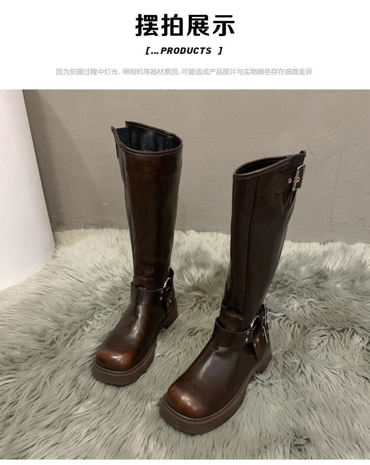 Jia Bujia のニーハイブーツの女性 2023 新しい秋のスタイルのスタイルベルトバックル太いヒールハンサムなアメリカンナイトブーツ 靴 シューズ オータム 秋物 ハーネス jxjxf78342196625