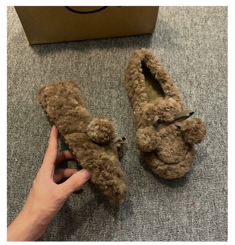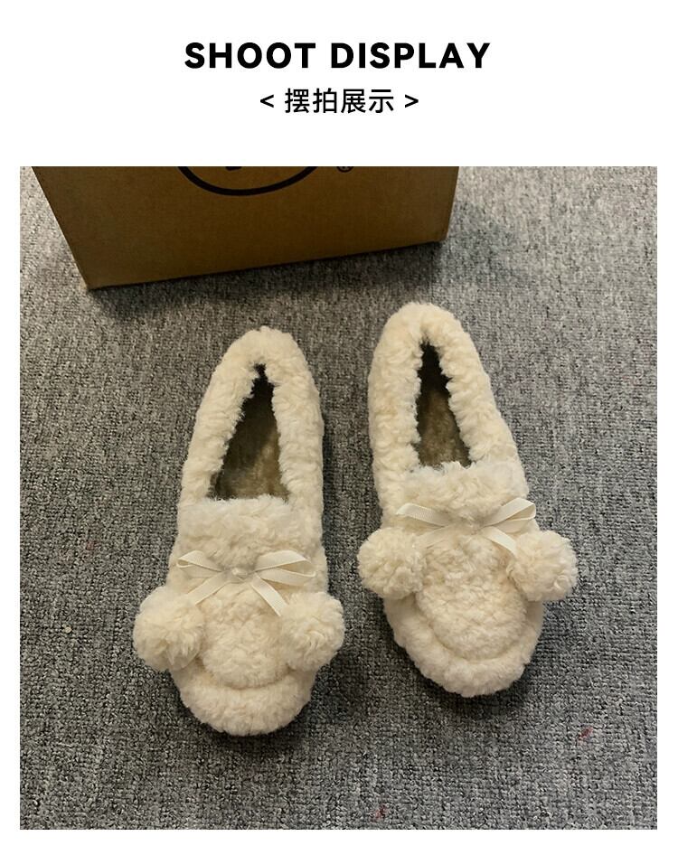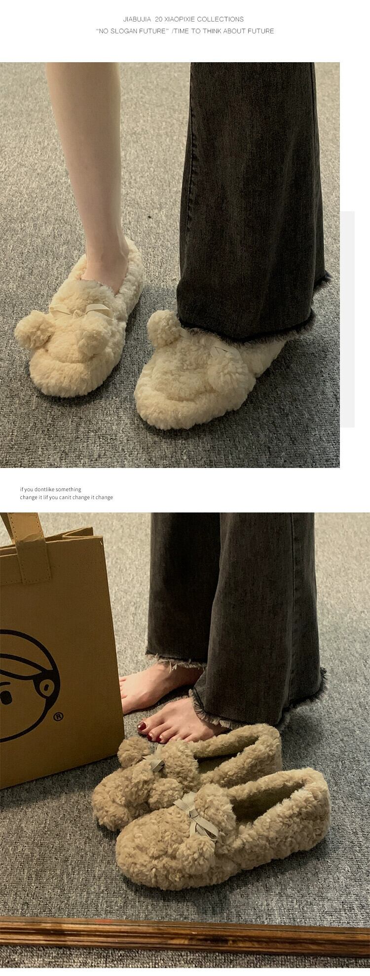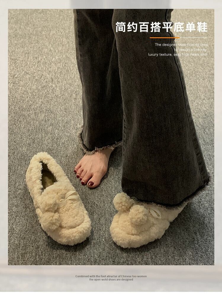 Jia Bujia 女性の毛皮のような靴 2023 秋スタイルの弓暖かく快適な柔らかい底の綿の靴 シューズ リボン コットン オータム 秋物 jxjxf27793528086