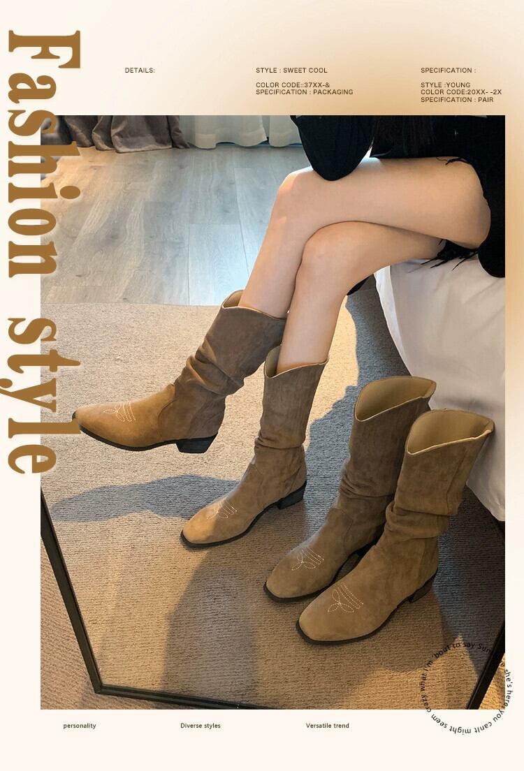 Jia Bujia インターネット有名人ショートブーツの女性 2023 秋の新スタイルのスーパーファッション多用途レトロなウエスタンスタイル厚いヒールウエスタンブーツ 靴 シューズ オータム 秋物 jxjxf68736964397