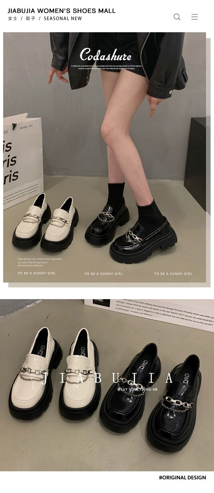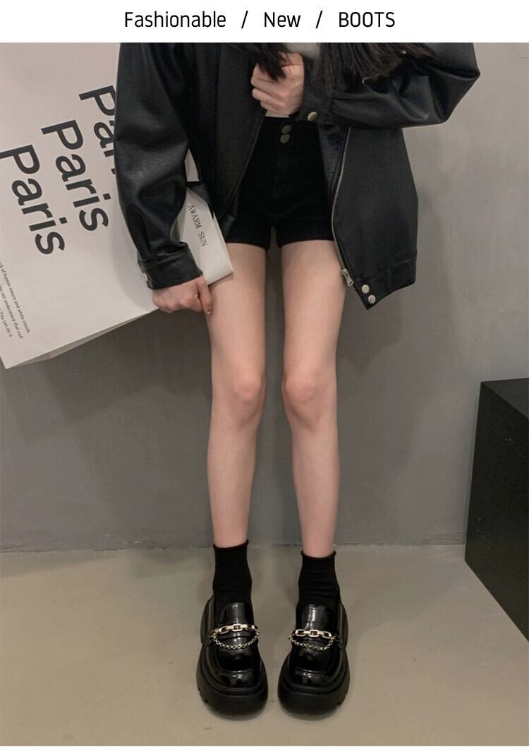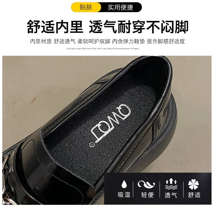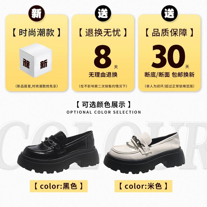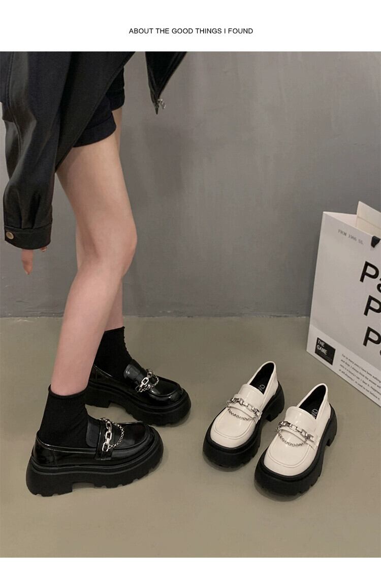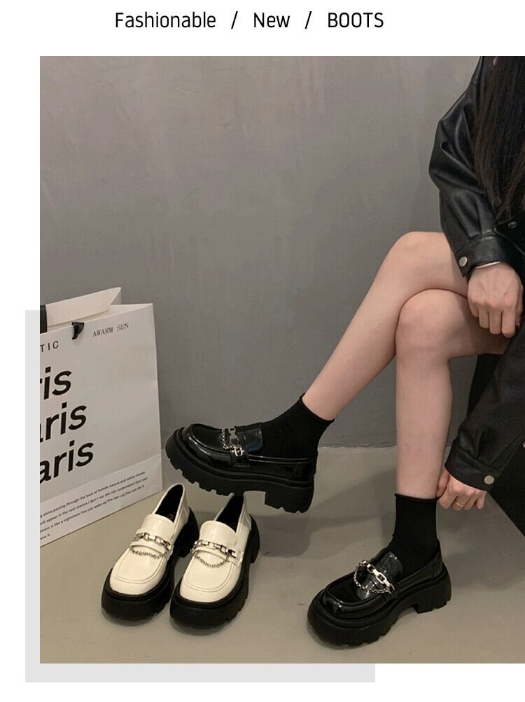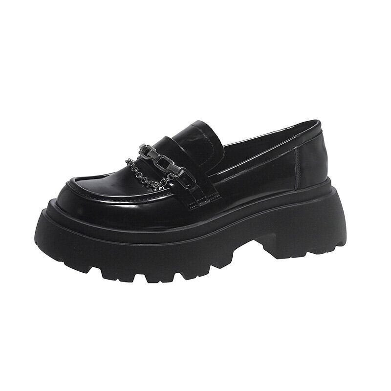 Jia Bujia 女性のローファー 2023 新しい秋スタイルフランスの気質メタルチェーンファッショナブルな厚いヒールの小さな革靴 シューズ オータム 秋物 レザー jxjxf7788538751