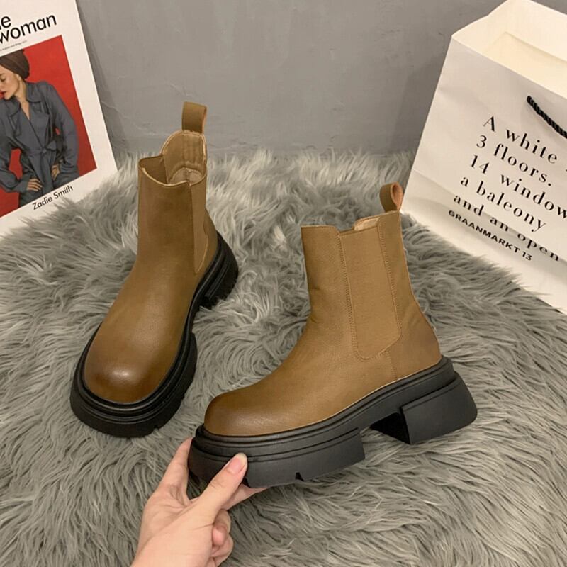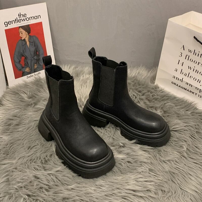 Jia Bujia ショートブーツ レディース 2023 秋超ホット多用途レトロハンサム厚底チェルシーブーツ 靴 シューズ オータム 秋物 jxjxf8041382133