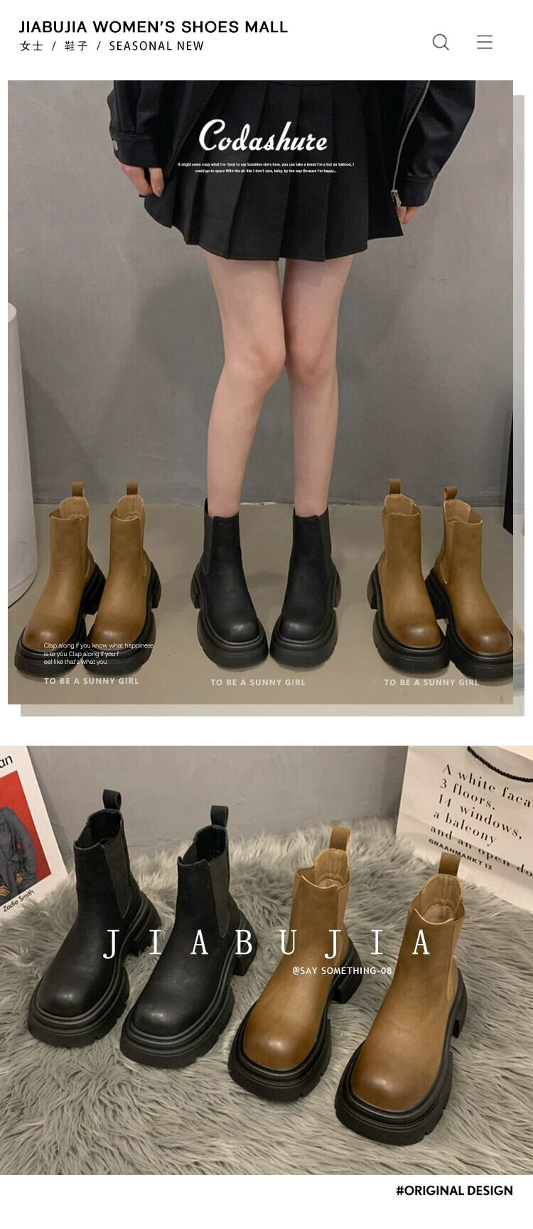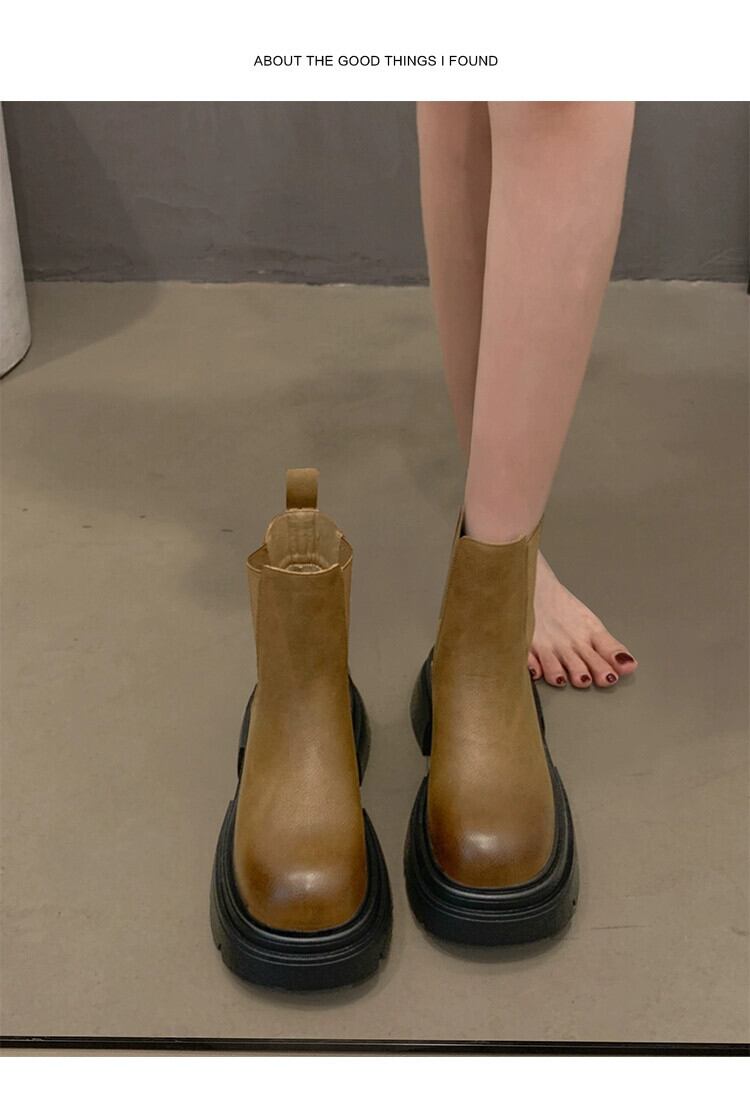 Jia Bujia ブーツ レディース ショートブーツ 2023 秋の新ファッションプラスベルベットレトロオートバイ厚底チェルシーブーツトレンド 靴 シューズ オータム 秋物 jxjxf54508542677