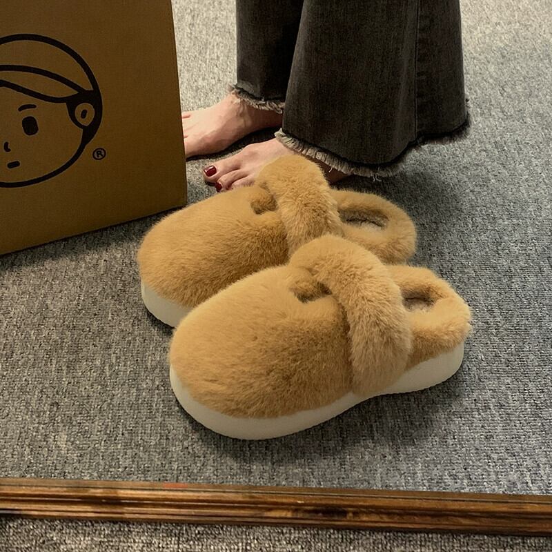 Jia Bu フェイク毛皮のようなスリッパの女性の 2023 秋スタイル可能な優しい西洋スタイル Comtable 暖かいソフト底包頭スリッパ ミュール 靴 シューズ オータム 秋物 jxjxf28929673946