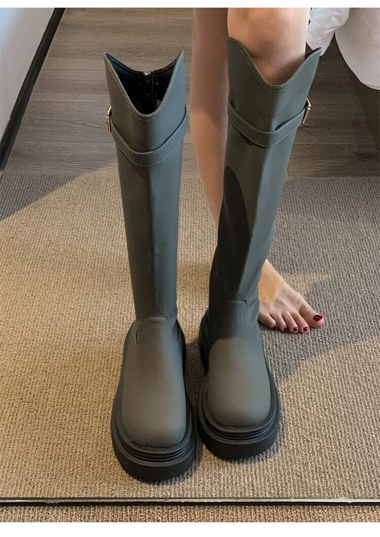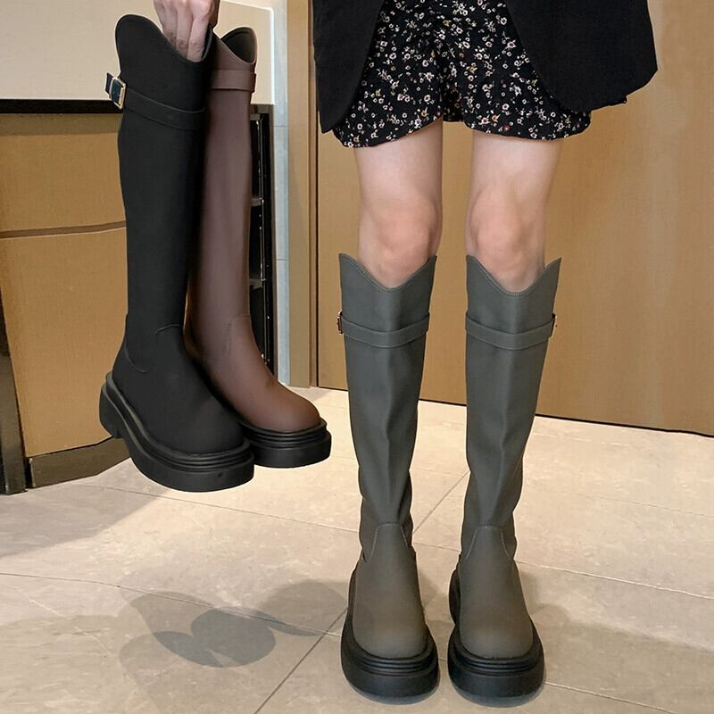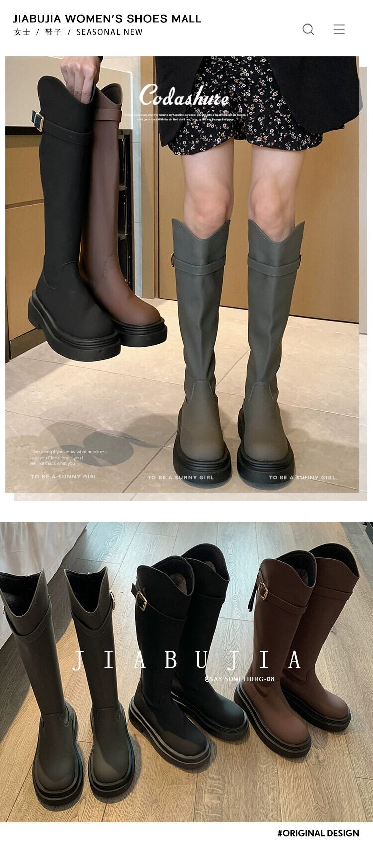 Jia Bujia 膝丈ブーツの女性 2023 秋の新ファッション多用途レトロハンサムな英国スタイルの騎士のブーツ 靴 シューズ オータム 秋物 jxjxf44747355256