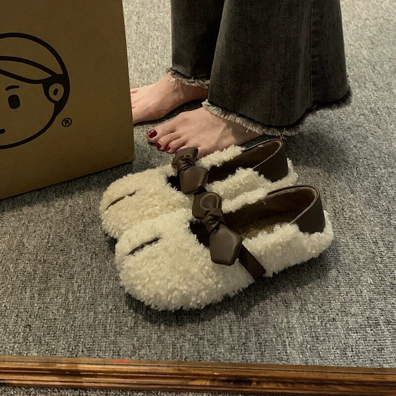 Jia Bujia インターネット有名人の毛皮の靴の女性 2023 秋の新スタイル優しいレトロなスタイルの平底 comtable ビーニー靴トレンディな シューズ オータム 秋物 jxjxf26826960041