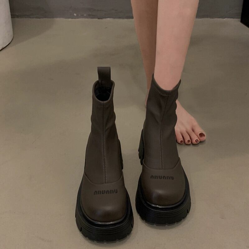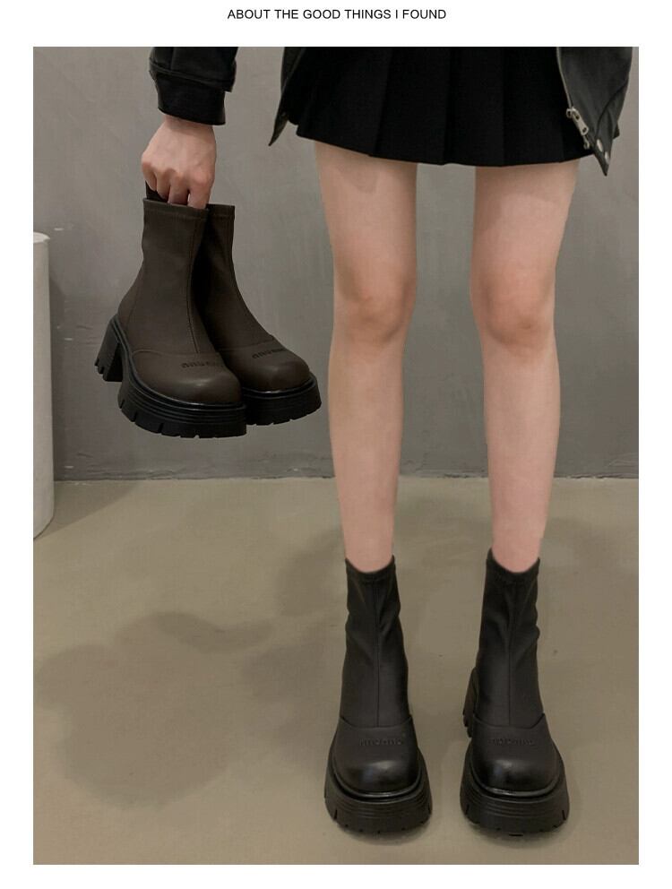 Jia Bujia フレンチショートブーツ女性 2023 新しい秋のファッションファッション小さな厚いヒールストリートスリムブーツトレンディな 靴 シューズ オータム 秋物 jxjxf44329533068