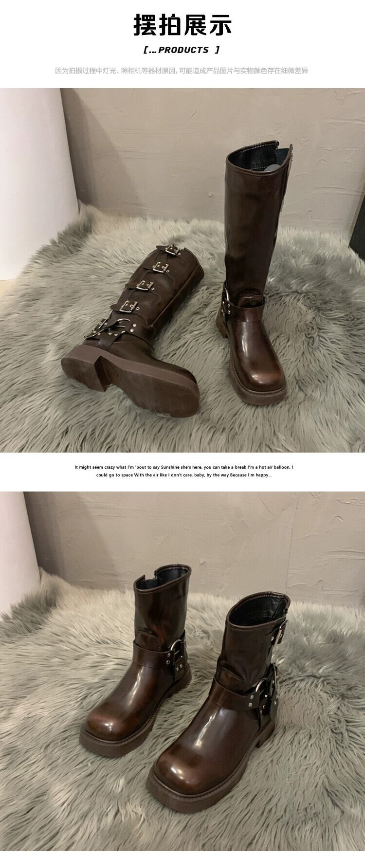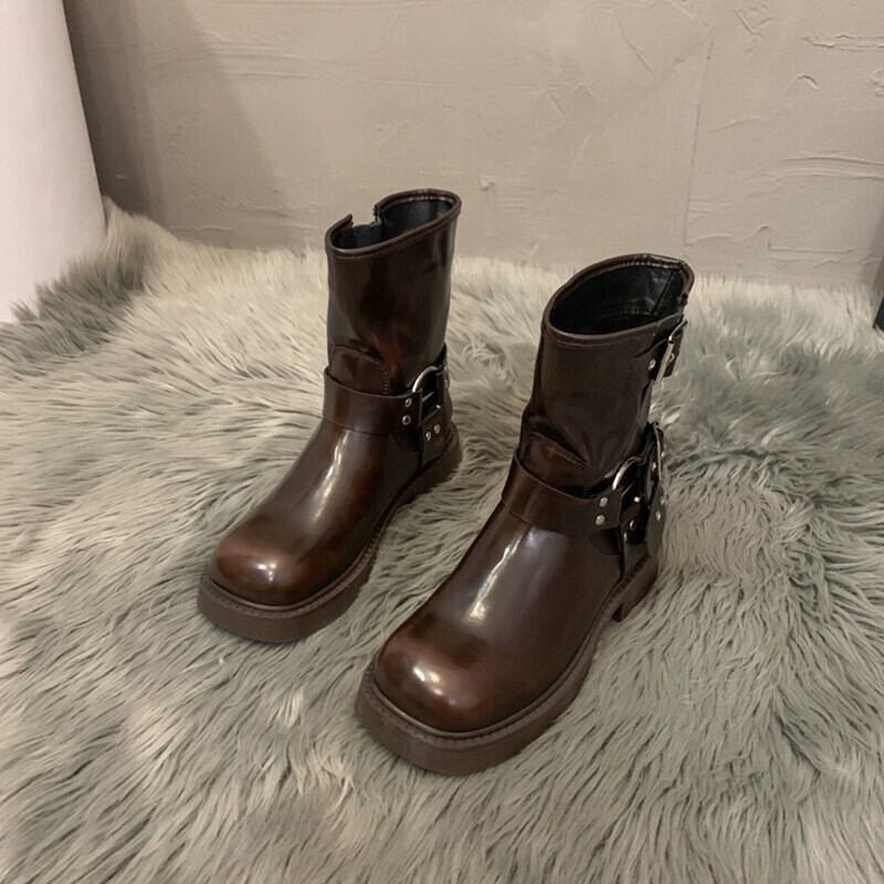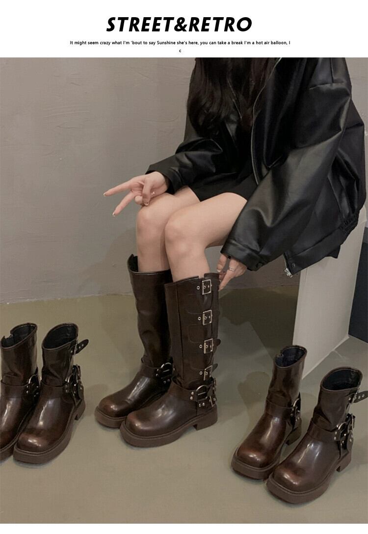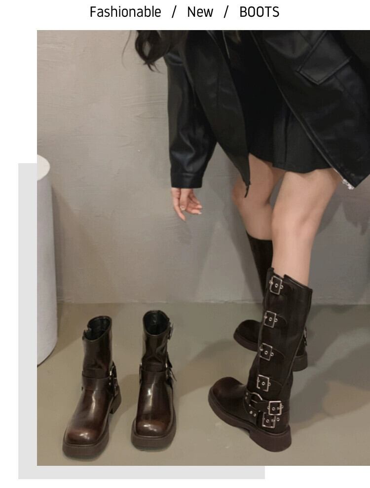 Jia Bujia インターネット有名人のブーツの女性 2023 秋の新スタイルレトロベルトバックル太いヒールハンサム騎士ブーツトレンド 靴 シューズ オータム 秋物 ハーネス jxjxf96827925069