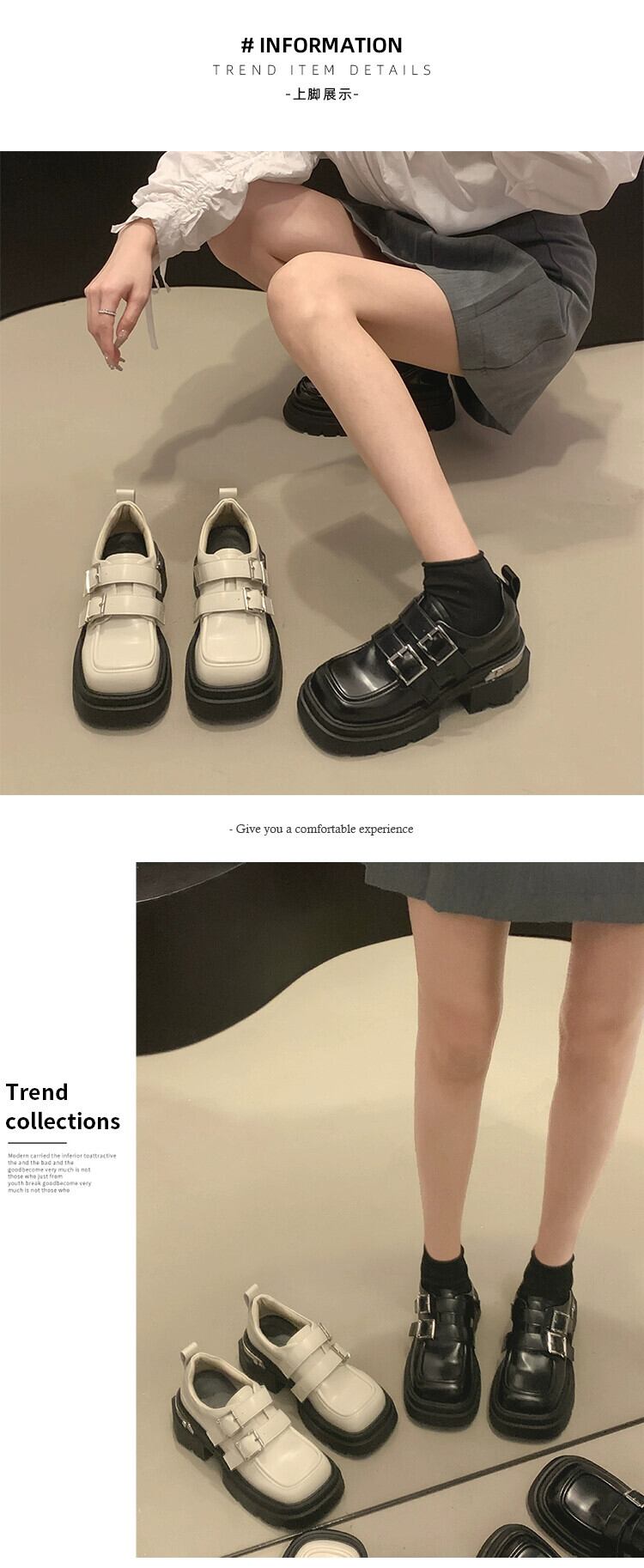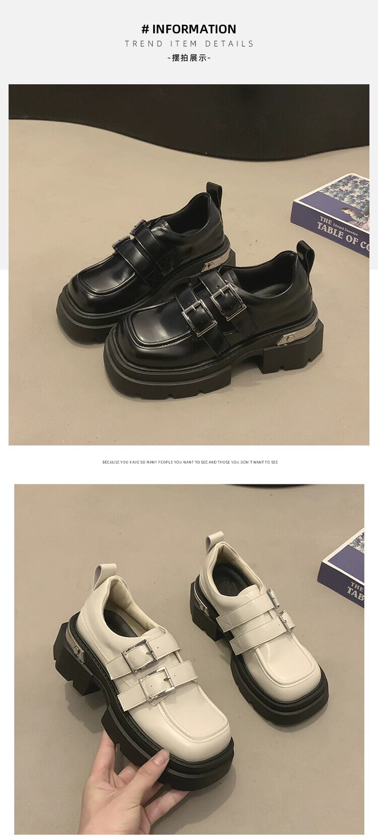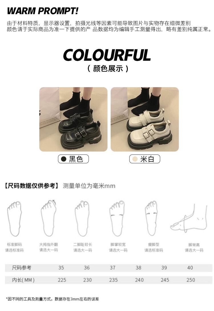 Jia Bujia スクエアトゥ小さな革の靴の女性 2023 秋スタイルベルトバックル多用途ローファートレンド シューズ オータム 秋物 レザー ハーネス スクウェア jxjxf96322121761