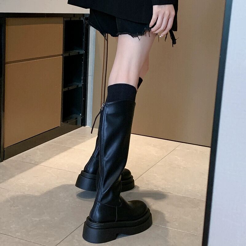 Jia Bujia 取り外し不可能なブーツの女性 2023 秋の新作ファッション多用途スリムでハンサムな厚底ナイトブーツトレンド 靴 シューズ オータム 秋物 jxjxf66757750422
