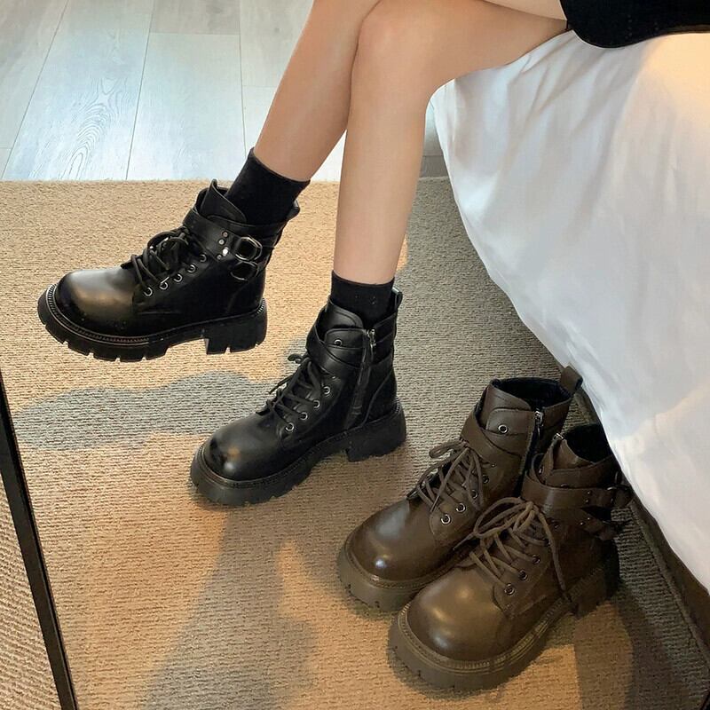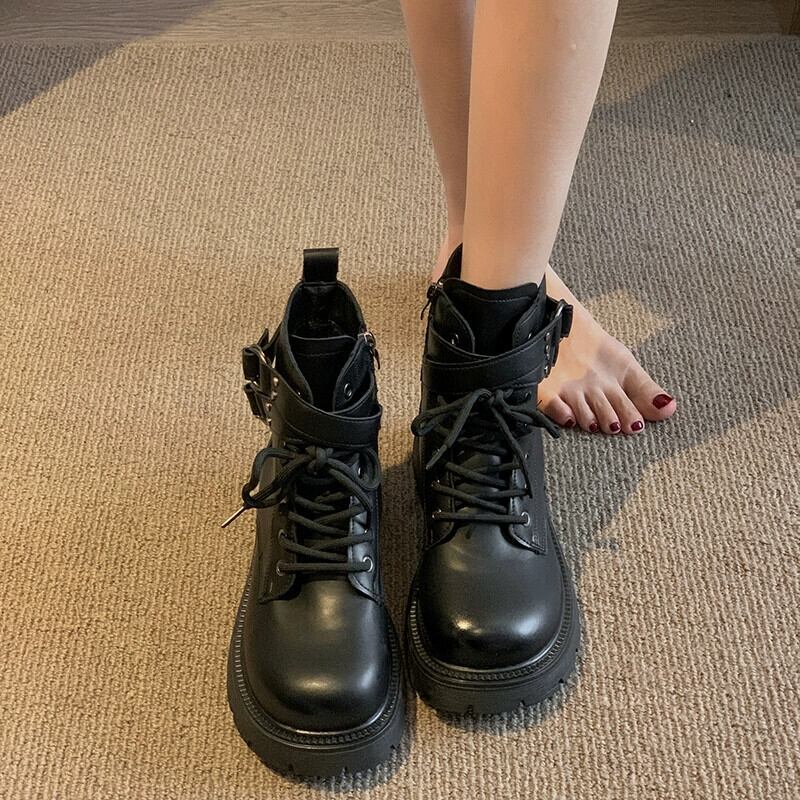 Jia Bujia ブーツ レディース ショートブーツ 2023 秋インターネット有名人有能でハンサムな厚底アーケードオートバイマーティンブーツ 靴 シューズ オータム 秋物 jxjxf9400962781