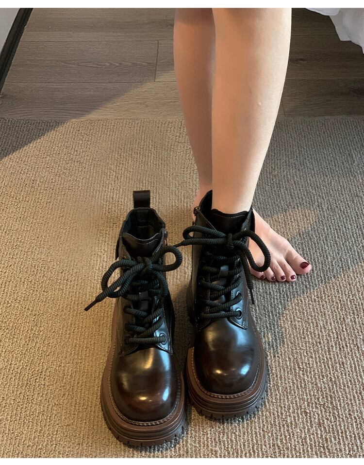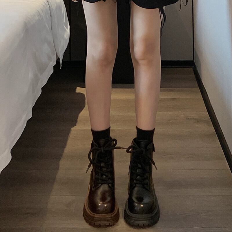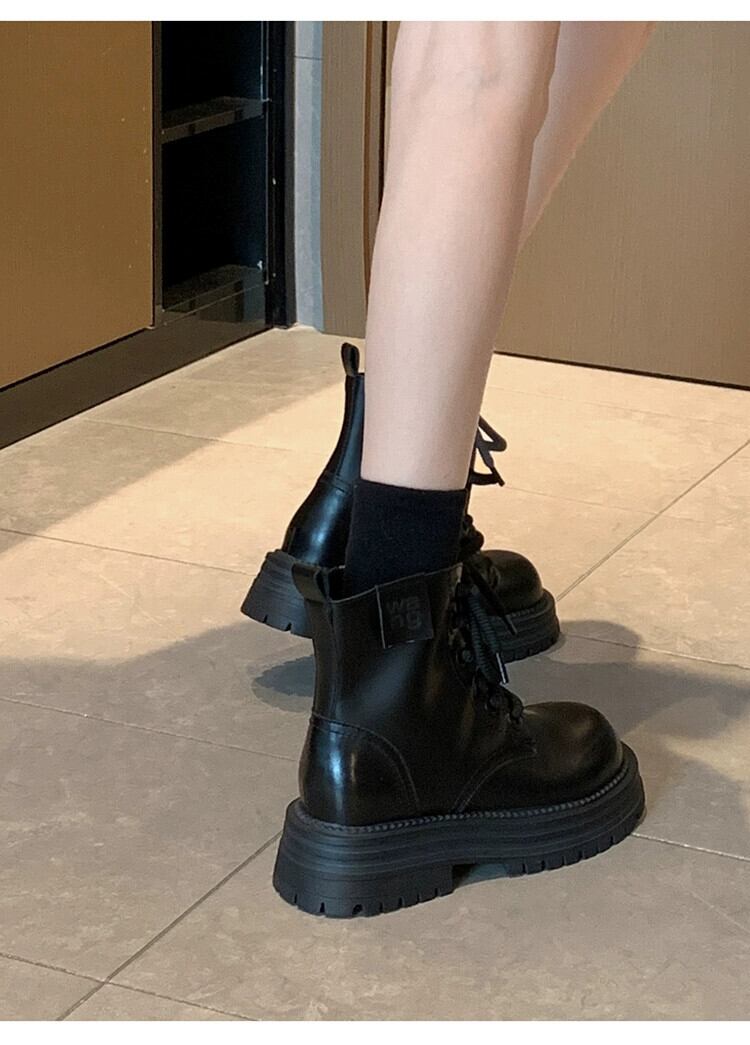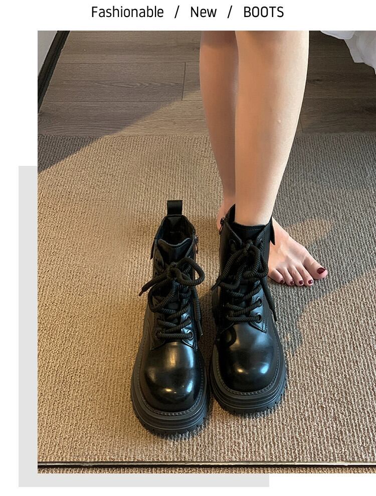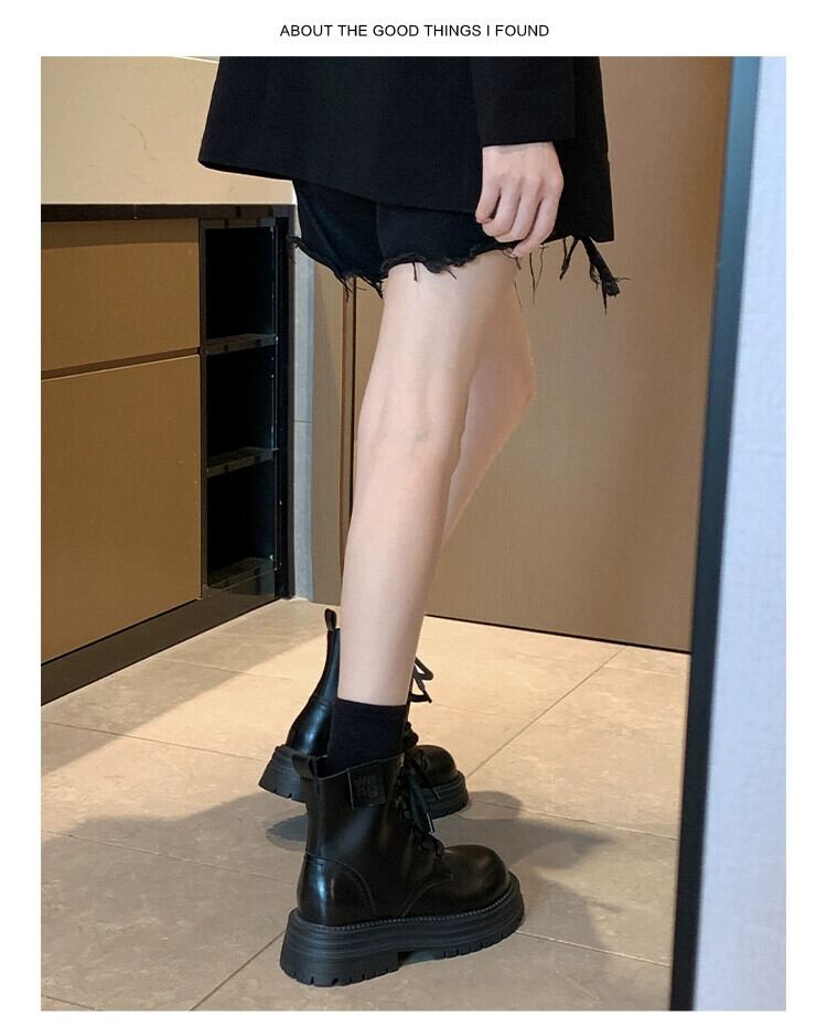 Jia Bujia インターネット有名人ショートブーツ女性 2023 秋の新ファッションプラスベルベットレトロオートバイ厚底ストリートマーティンブーツ 靴 シューズ オータム 秋物 jxjxf28082905132