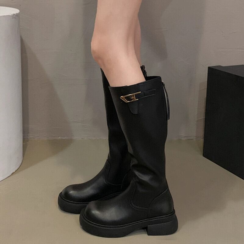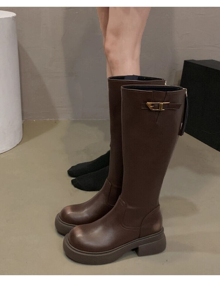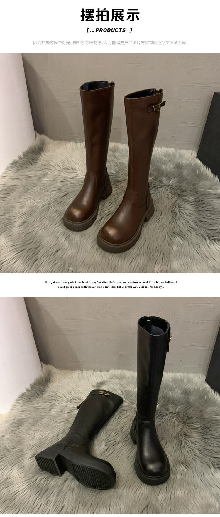 Jia Bujia 厚底ブーツの女性 2023 秋の新ファッションベルトバックルレトロフランス騎士ブーツトレンド 靴 シューズ オータム 秋物 ハーネス jxjxf96784806959