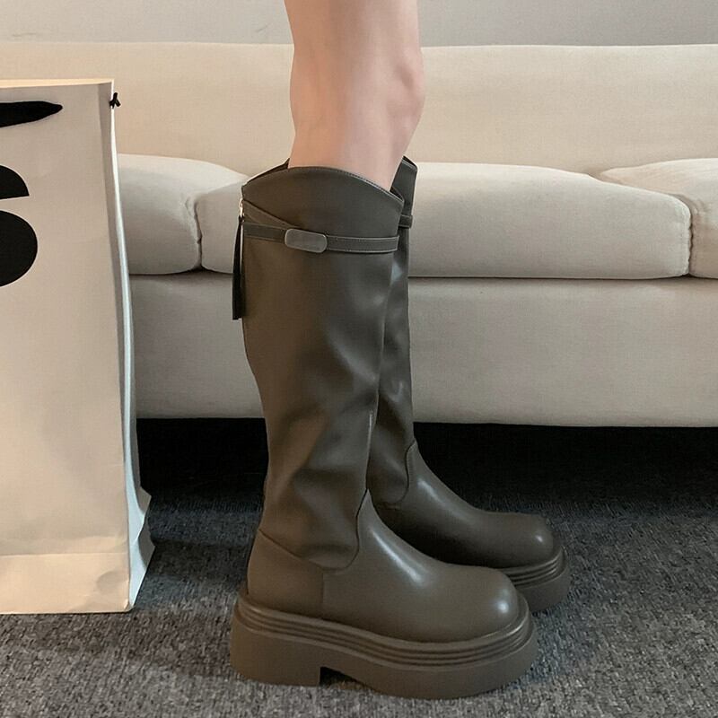 Jia Bujia ブーツ レディース ブーツ 2023 秋超ホット多用途レトロ西洋スタイル厚底スリムブーツ 靴 シューズ オータム 秋物 jxjxf99999270468