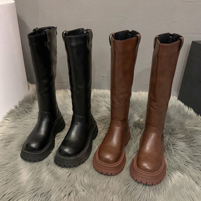 Jia Bufake ブーツの女性 2023 新しい秋のスタイルのインターネット有名人の超レトロな痩身厚底ブーツは脱落しません 靴 シューズ オータム 秋物 jxjxf54736182524