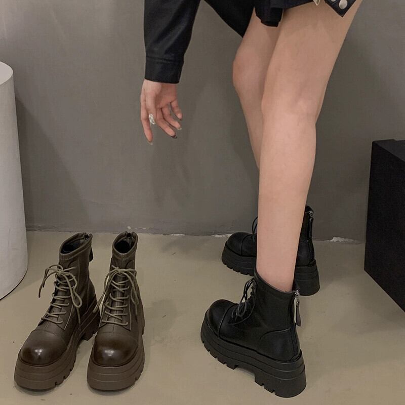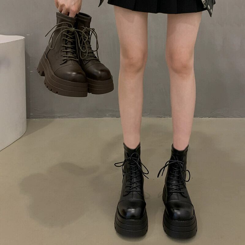 Jia Bufake マーティンブーツ女性 2023 秋の新ハンサムファッショナブルな多目的高さの増加厚いヒールオートバイショートブーツトレンド 靴 シューズ オータム 秋物 jxjxf64306344165