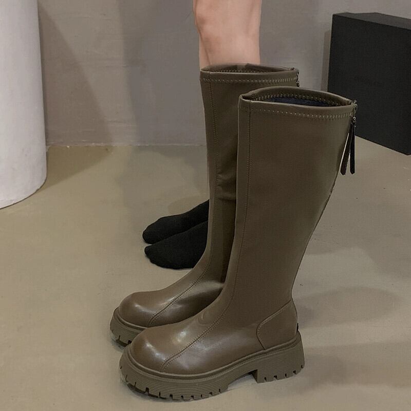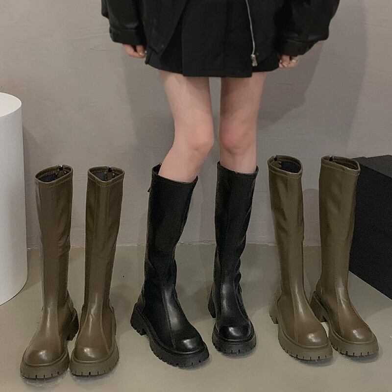 Jia Bujia ブーツ レディース ブーツ 2023 秋の新スタイルフレンチファッション気質シンプルな厚底スリムブーツトレンド 靴 シューズ オータム 秋物 jxjxf82639433790