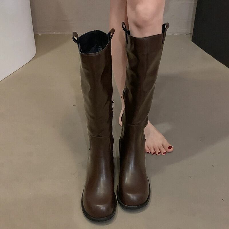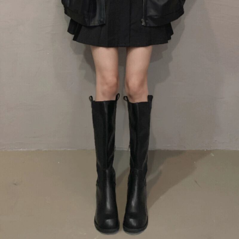 Jia Bufake ブーツの女性 2023 新しい秋のスタイルファッショナブルで多用途なフレンチスタイルの comtable 厚いヒールスリムブーツトレンディな 靴 シューズ オータム 秋物 jxjxf46923244405