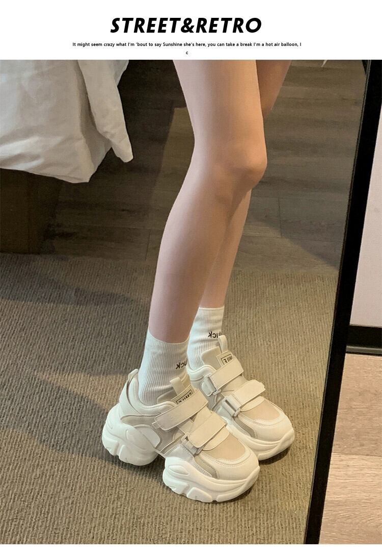 Jia Bujia スポーツシューズの女性の 2023 秋学生多用途ベルクロ太いヒールを高める靴 オータム 秋物 jxjxf70207174929