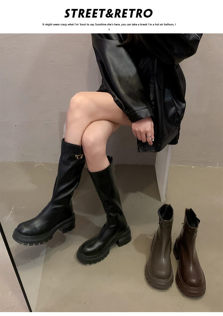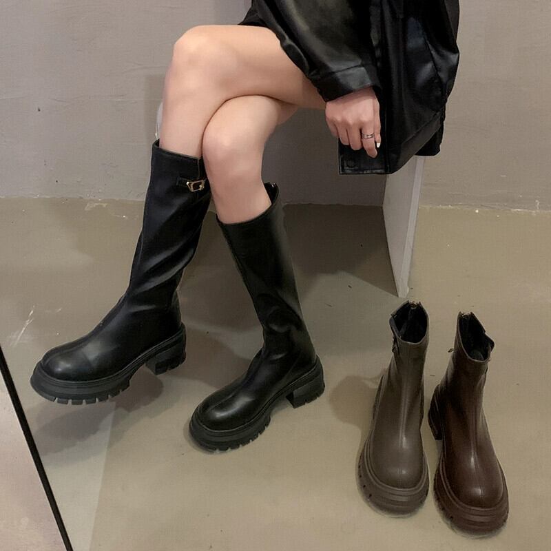 Jia Bufake ショートブーツ女性 2023 秋の新スタイルインターネットセレブのファッション気質トレンディなレトロな厚底 comtable スリムブーツ 靴 シューズ オータム 秋物 jxjxf28176541728