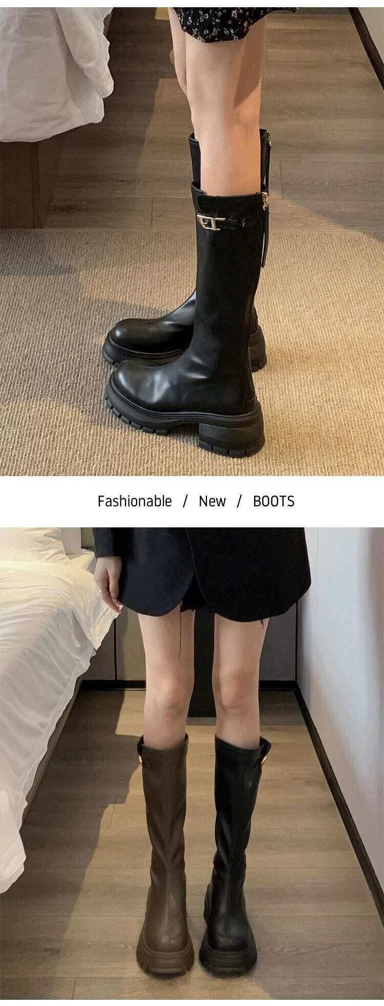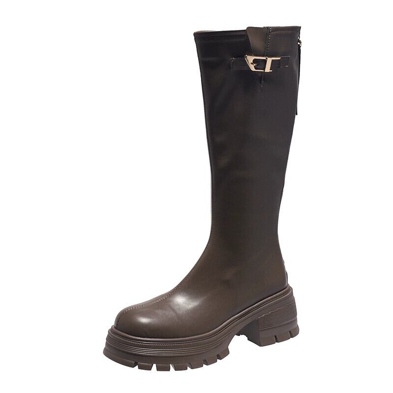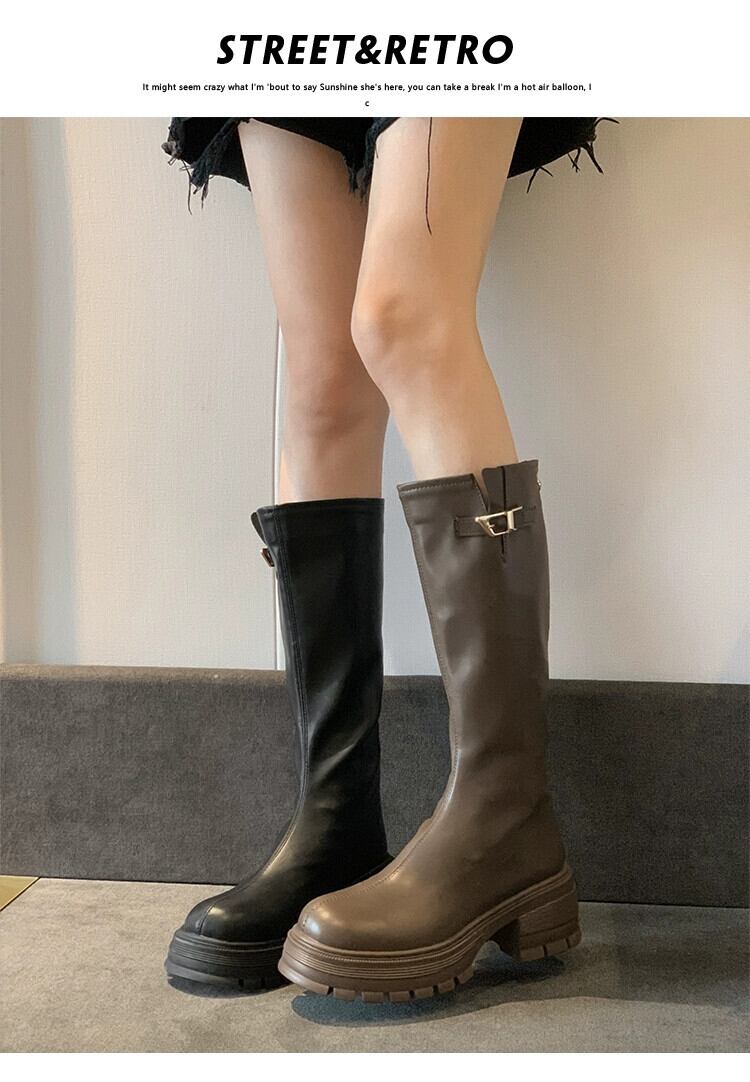 Jia Bufake ロングブーツの女性 2023 秋の新スタイル気質ベルトバックルファッション多用途強化太いヒールスリムブーツ 靴 シューズ オータム 秋物 ハーネス jxjxf9105284058