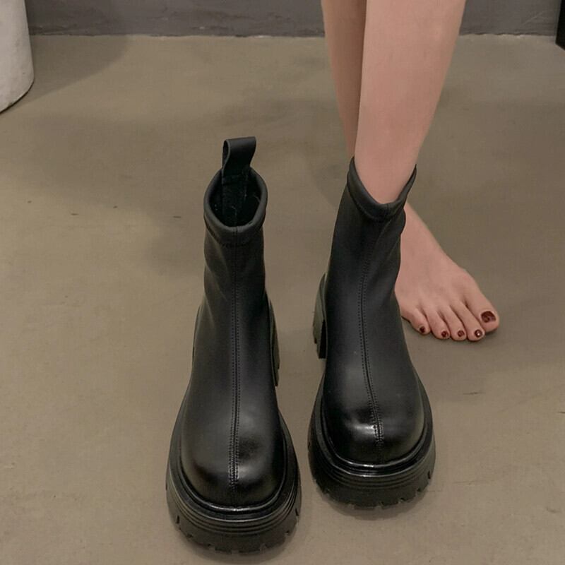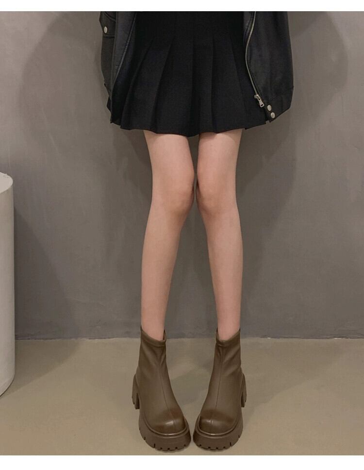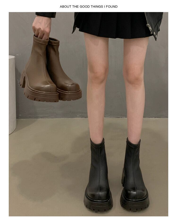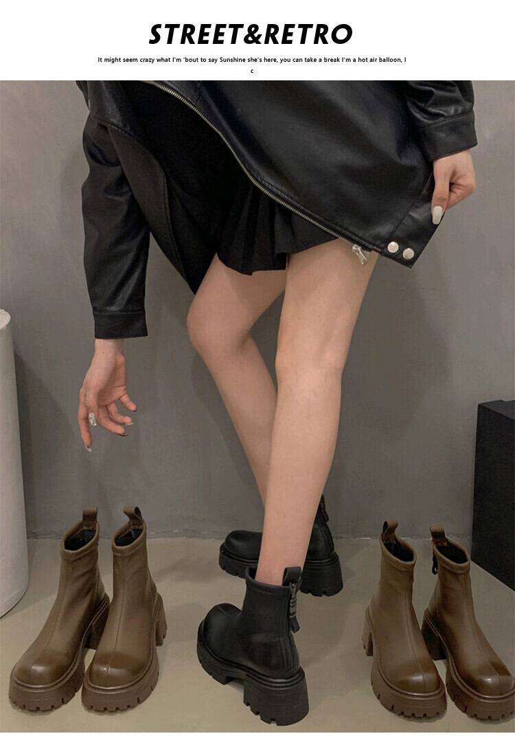 Jia Bufake ショートブーツ女性の 2023 秋スタイルレトロスタイルプラスベルベット多用途太いヒール英国スタイルスリムブーツ 靴 シューズ オータム 秋物 jxjxf71764288657