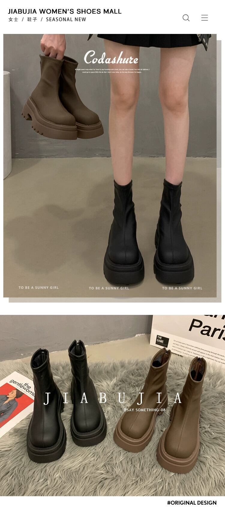 Jia Bufake ショートブーツ レディース 2023 秋レトロ多用途ハンサム小型厚底ストリートスリムブーツ 靴 シューズ オータム 秋物 jxjxf55644721340