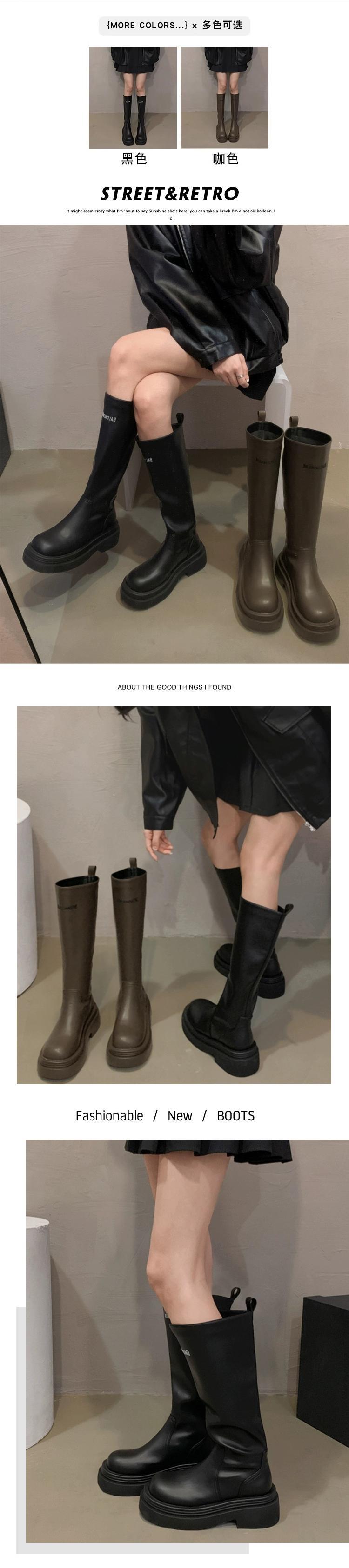 Jia Bufake ハイブーツの女性 2023 秋の新ファッション多用途レトロハンサム厚いヒール膝騎士ブーツ以上ではない 靴 シューズ オータム 秋物 jxjxf35973860303