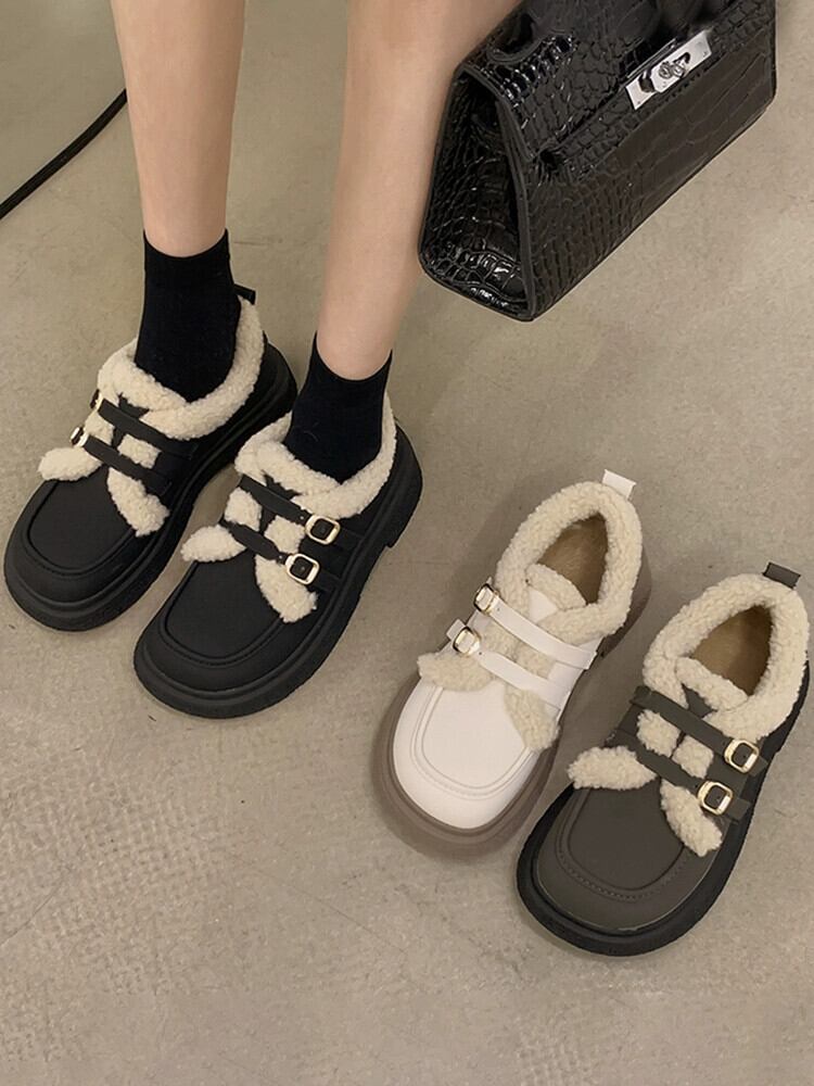 小さな革の靴の女性 2023 新しいシングルシューズ秋と冬プラスベルベットの靴 ese レトロ暖かい英国スタイルのウールの綿の靴 コットン オータム 秋物 ウィンター 冬物 レザー jxjxf30309689252