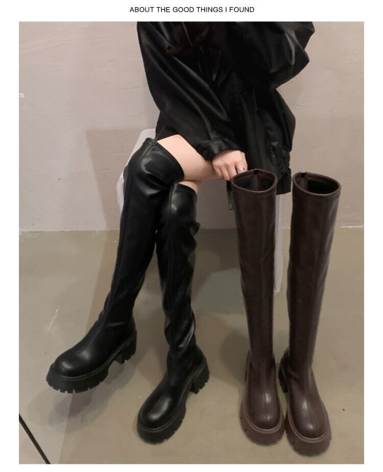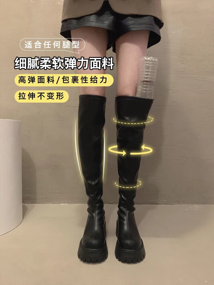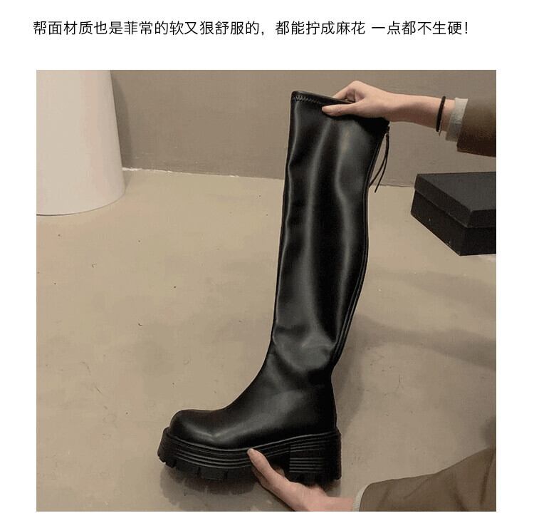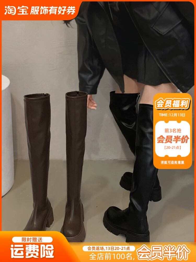 Jia Bujia 膝上ブーツの女性 2023 秋と冬の新ハイブーツファッションレトロな小さな太いヒールスリムブーツ 靴 シューズ オータム 秋物 ウィンター 冬物 jxjxf65489335339