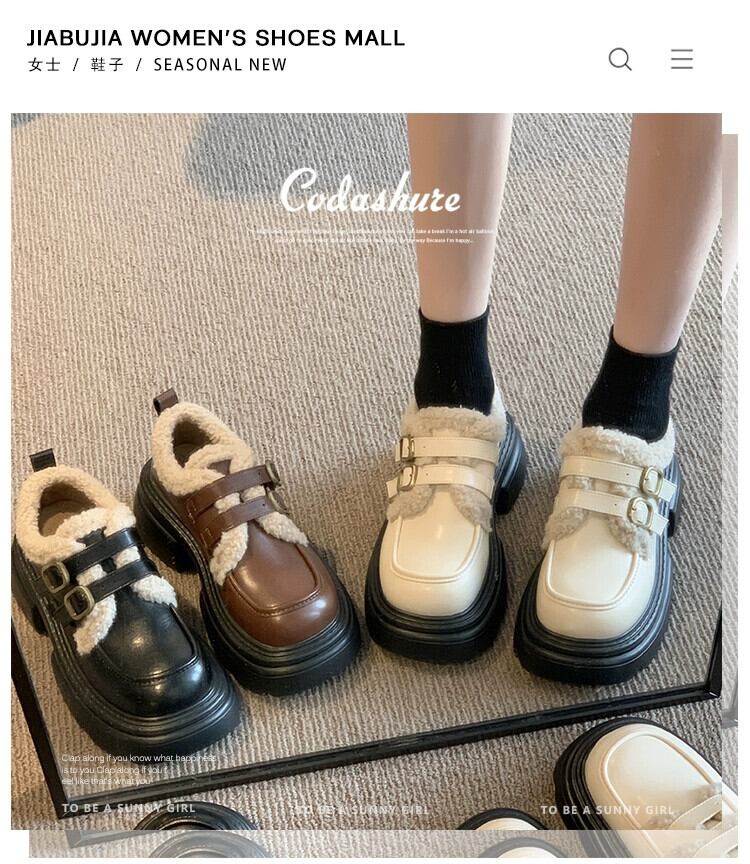 Jia Bufake 小さな革の靴の女性 2023 秋と冬新しいプラスベルベットの靴豪華な綿の靴英国スタイルの厚底ローファー シューズ コットン オータム 秋物 ウィンター 冬物 レザー jxjxf79586817891