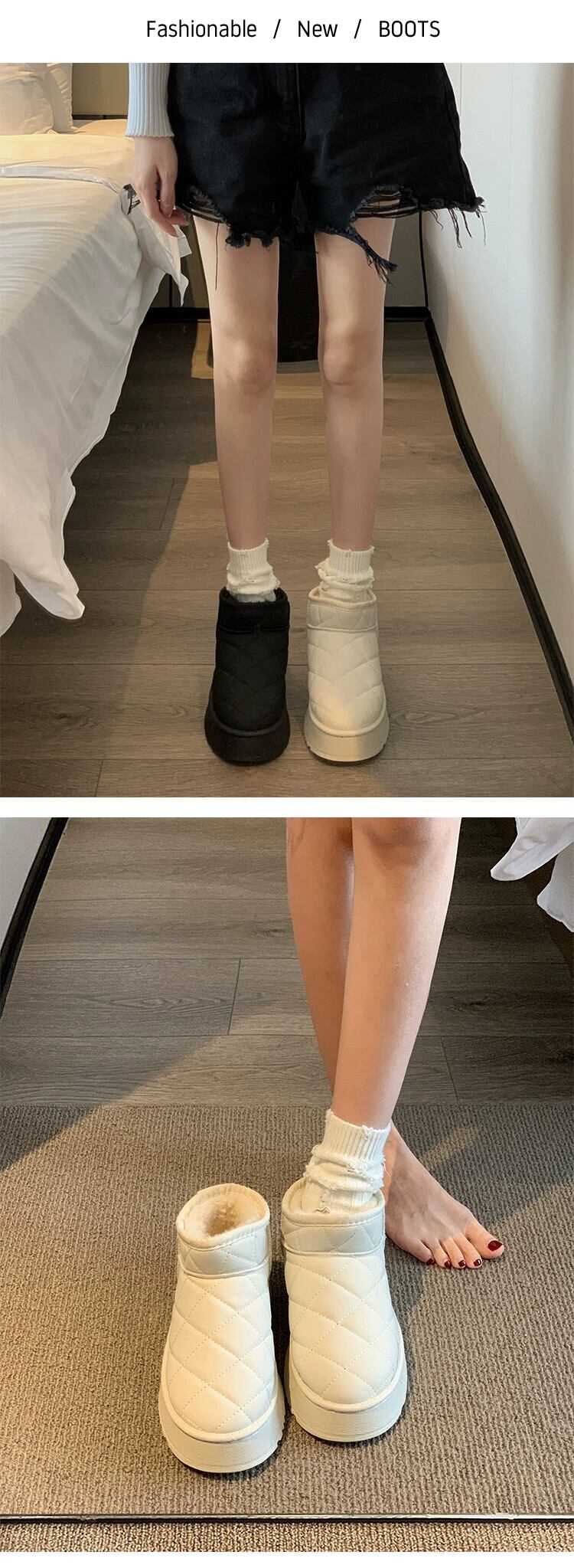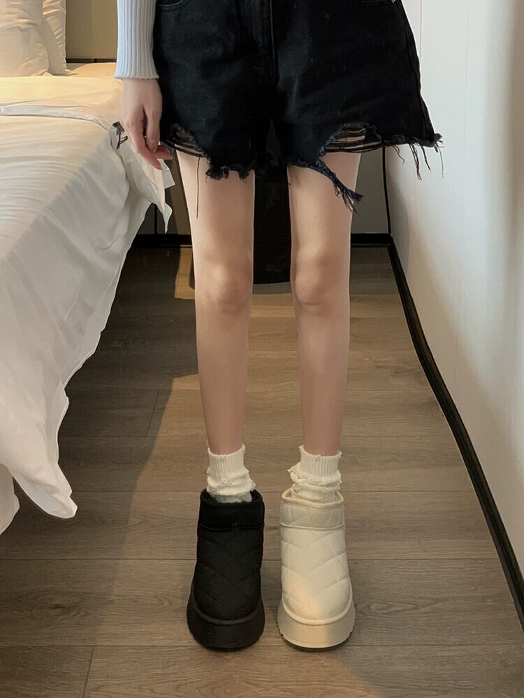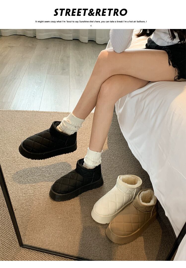 Jia Bujia 冬の綿の靴の女性 2023 新スタイルレトロ多用途暖かい eign スタイル厚い底プラスベルベットのスノーブーツトレンディな シューズ コットン ウィンター 冬物 jxjxf67123344689