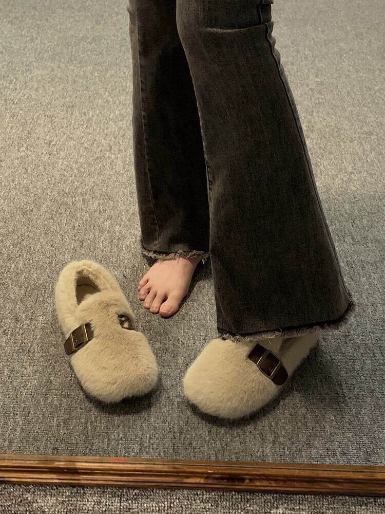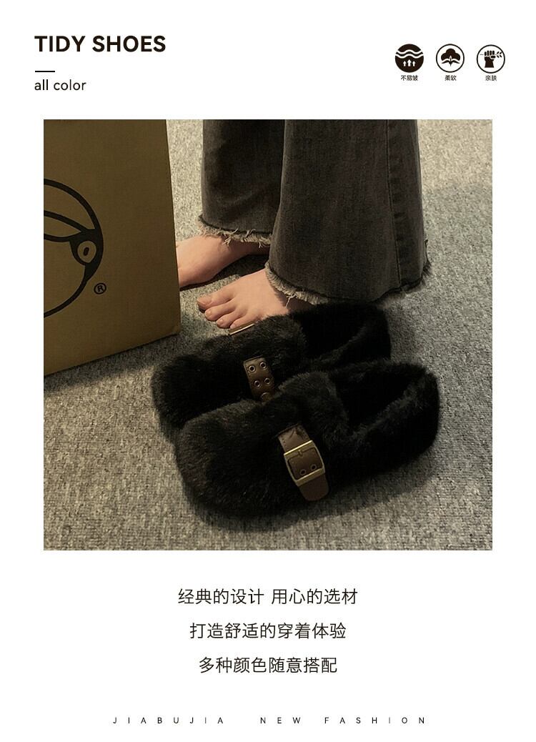 Jia Bu 偽毛毛マオ靴の女性の 2023 秋と冬レトロ多用途ワンピース Comtable フラットシューズ Doudou 靴 オータム 秋物 ウィンター 冬物 jxjxf24026604219