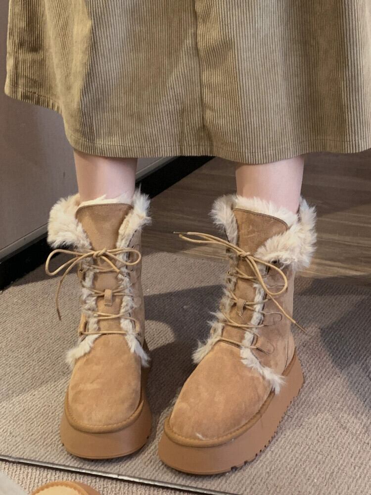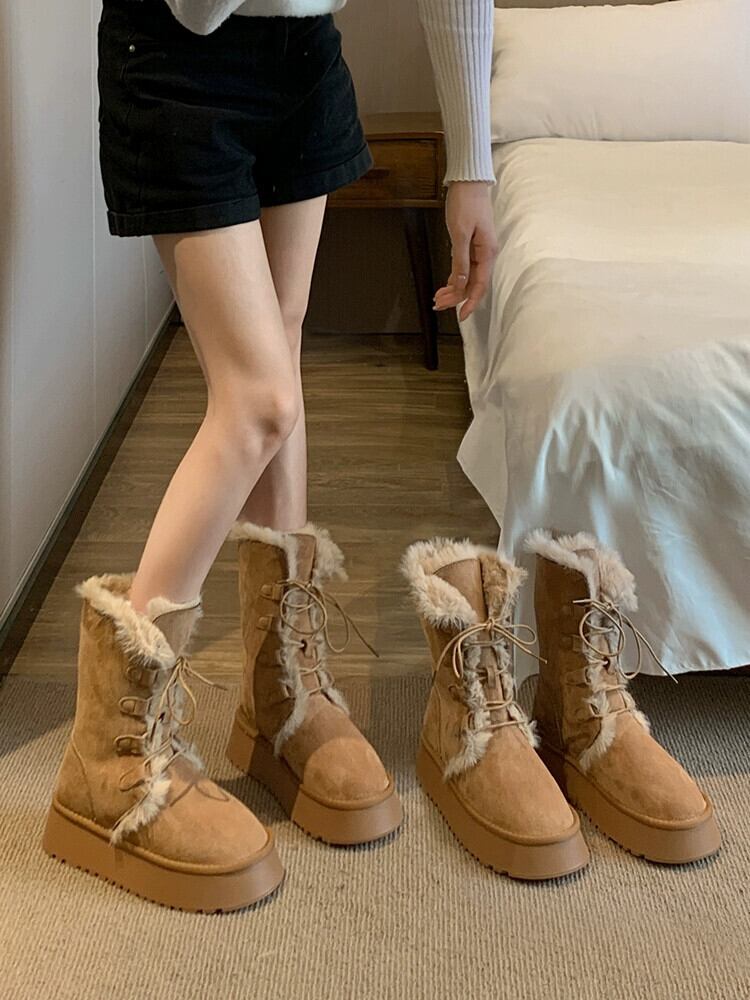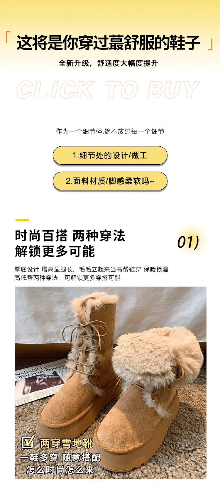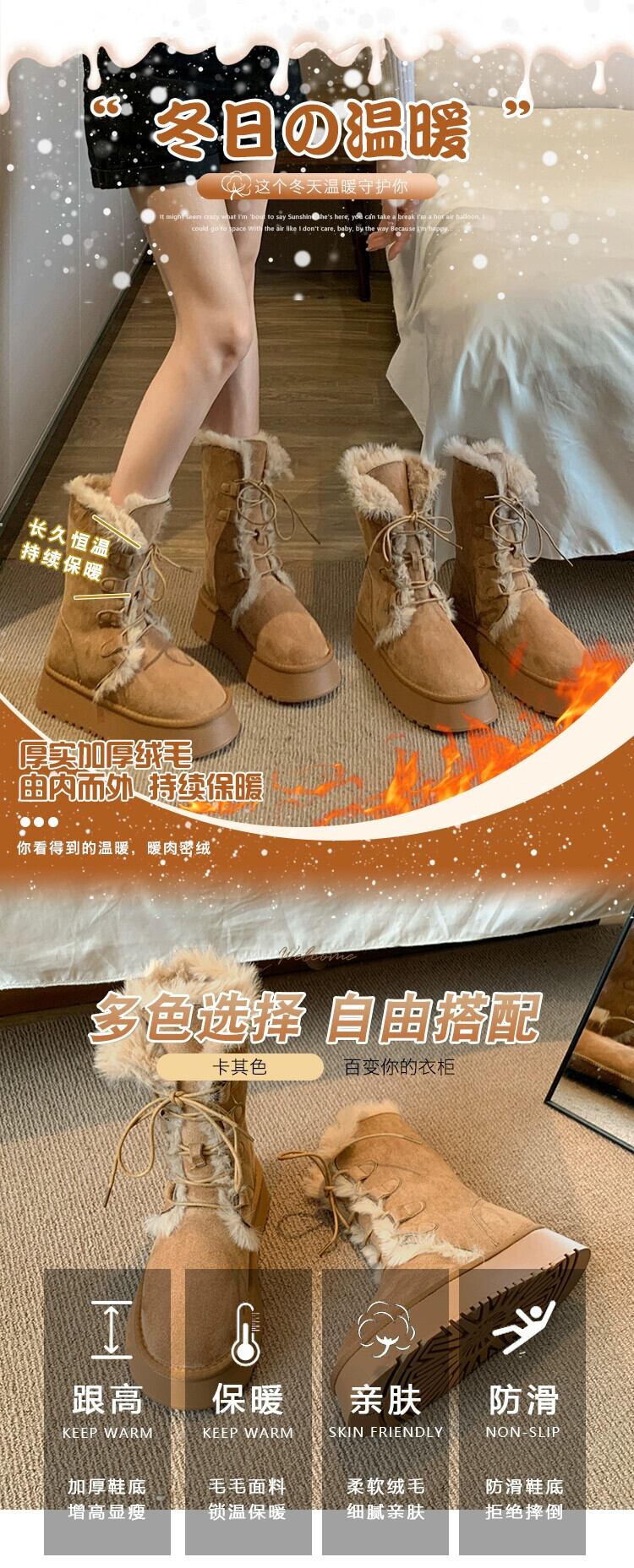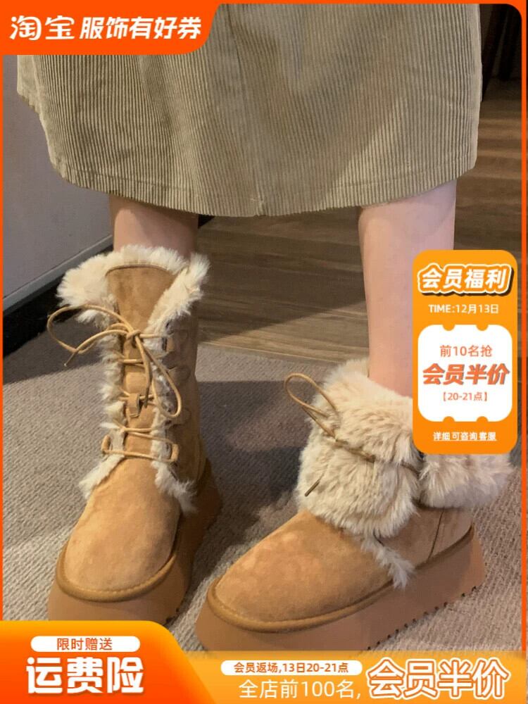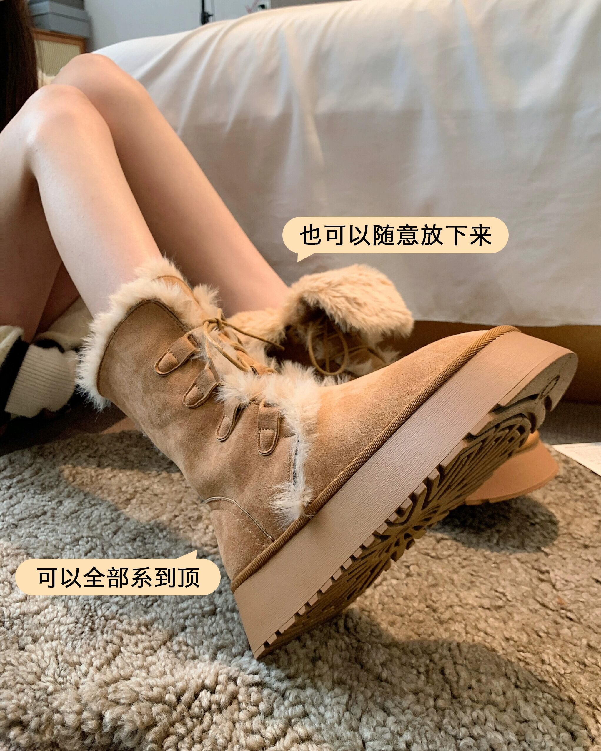 Jia Bujia インターネット有名人プラスベルベットスノーブーツの女性 2023 冬の新ファッションファッショナブルな毛皮のような厚い底暖かい綿の靴 シューズ コットン ウィンター 冬物 jxjxf10776356233