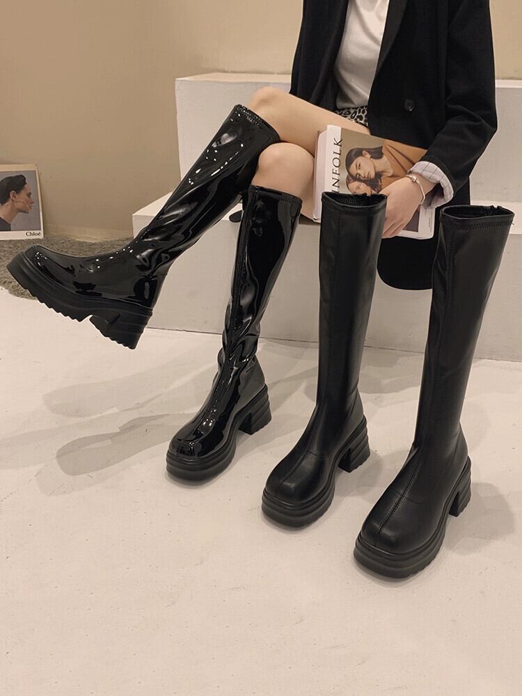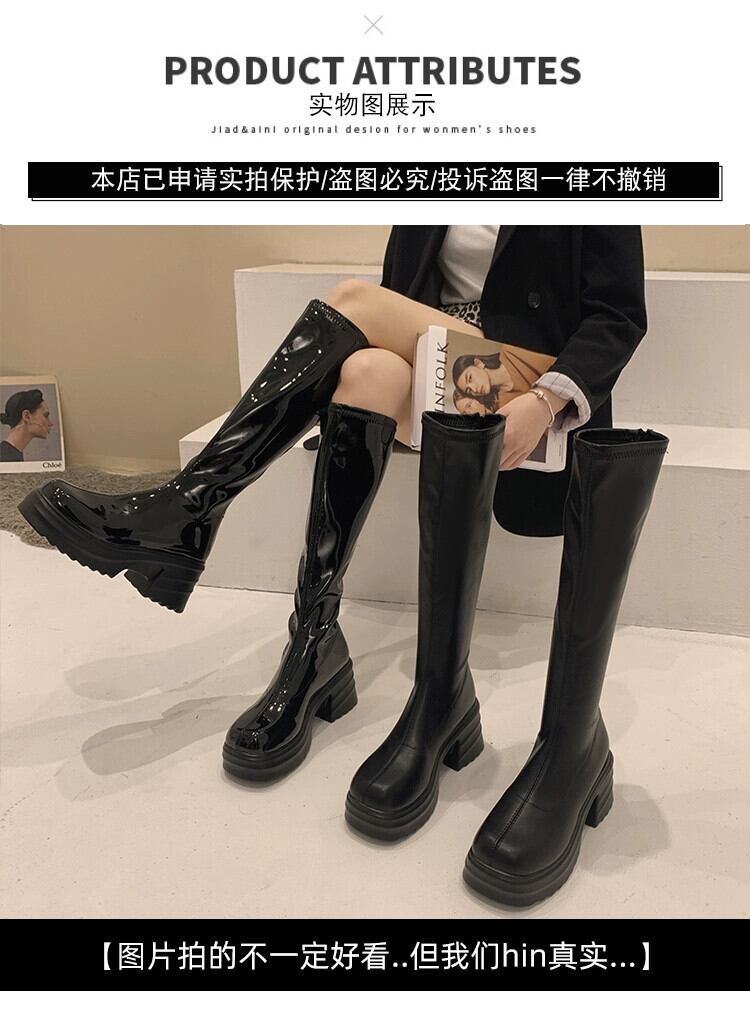 しかし、ニーハイブーツの女性 2023 春の新ファッションレトロな小さな太いヒール滑り止めスクエアトゥスリムブーツ 靴 シューズ スプリング 春物 スクウェア jxjxf64993491277