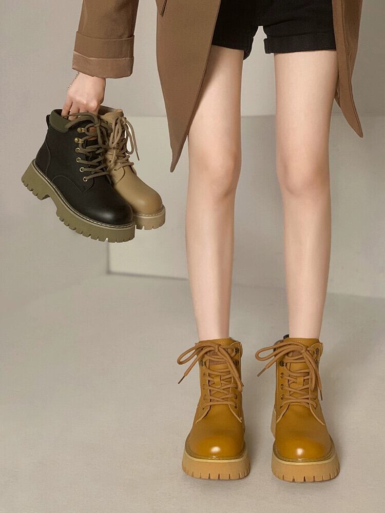 ショートブーツの女性 2022 冬の新スタイルシンプルなトレンディな多目的小型厚いヒールノンスリップレトロオートバイマーティンブーツ 靴 シューズ ウィンター 冬物 jxjxf36297033559